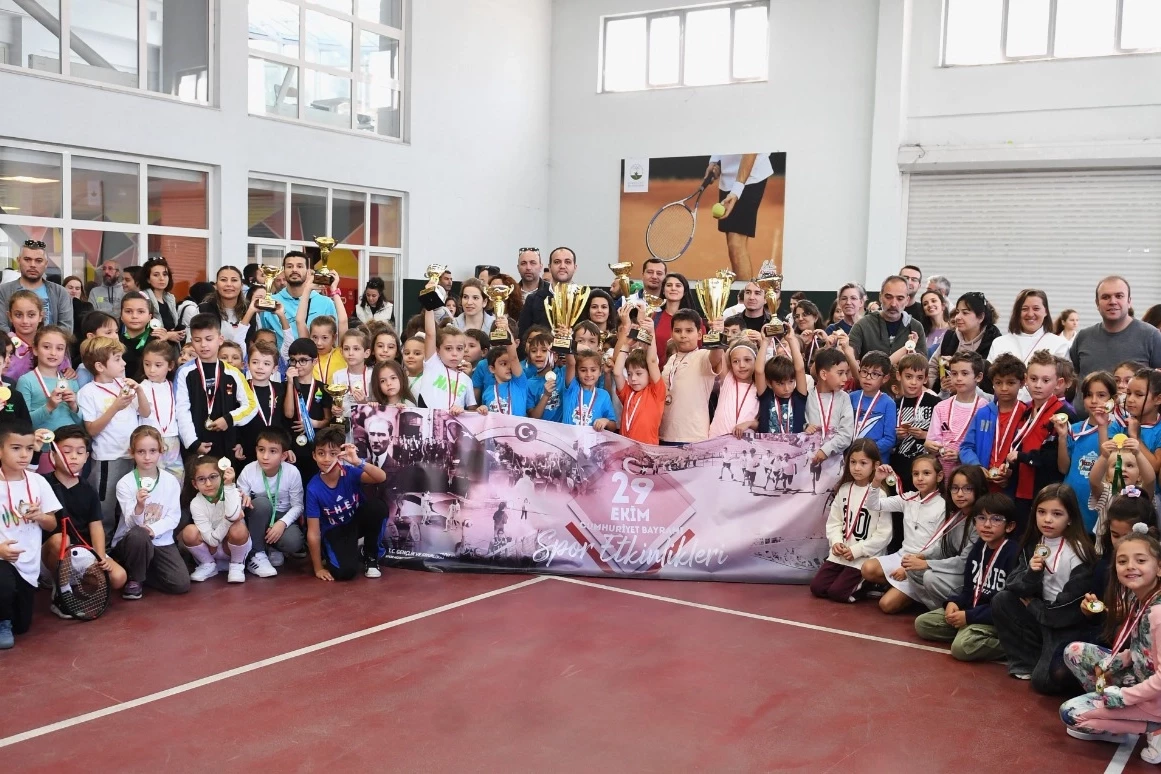 BURSA (İGFA) - Ertuğrul Sağlam Spor Tesisleri'nde 6-7-8 yaş çocuklar için düzenlenen 29 Ekim Cumhuriyet Kupası Tenis Turnuvası, 3 gün süren mücadelelerin ardından sona erdi. 15 kulüpten 139 sporcunun katıldığı turnuva, kızlar ve erkeklerde beyaz ile kırmızı olmak üzere iki gurup olarak yapıldı. Tek maç ve üç set üzerinden yapılan eleme karşılaşmaları sonunda finale yükselen geleceğin şampiyon raketleri, büyükleri aratmayacak bir performans ortaya koydu.
