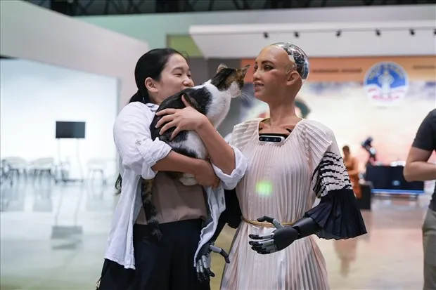 Sophia, en çarpıcı karşılaşmasını dijital deneyim ve sergi alanında yaşadı. Sanat eserlerini inceleyen Sophia’yı merak eden bir sokak kedisi ile insansı robotun karşılaşması ilginç görüntüler oluşturdu. Sophia’yı ülkemize getiren ekip, onun sokaktaki hayvanlarla ilk karşılaşması olduğunu dile getirdi.