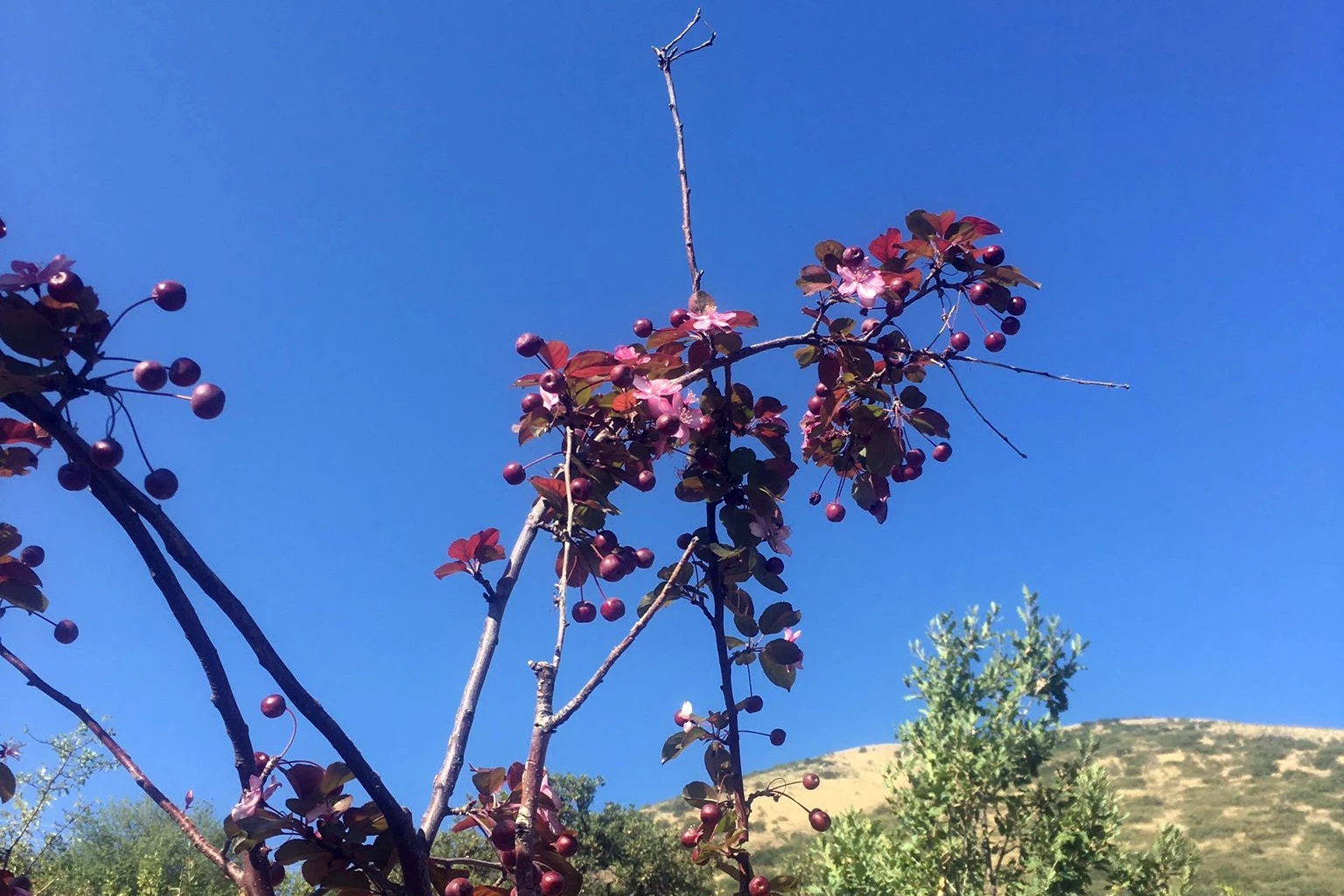 Ali Dağı’ndaki süs elması, meyvesi üstündeyken çiçek açtı