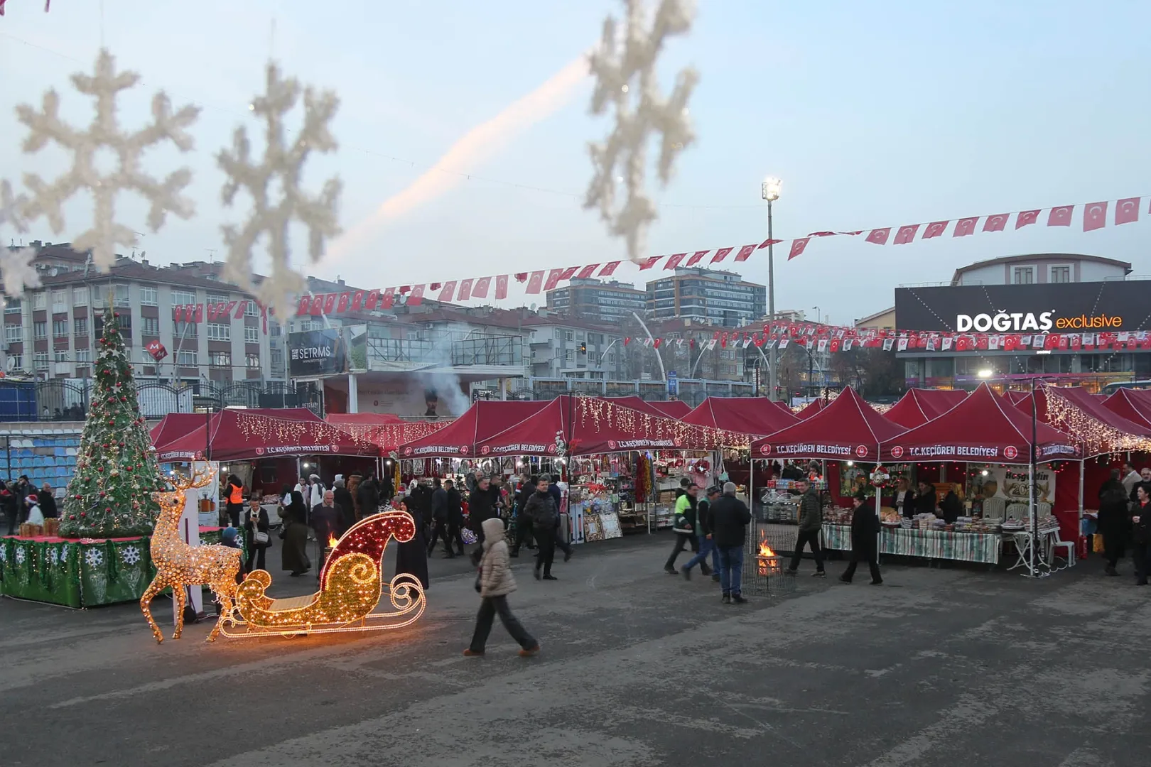 Görsel zenginliğiyle dikkat çeken alan, vatandaşların uğrak noktalarından biri haline gelirken, alışveriş yapan ziyaretçiler yeni yıl coşkusunu da doyasıya yaşıyor.