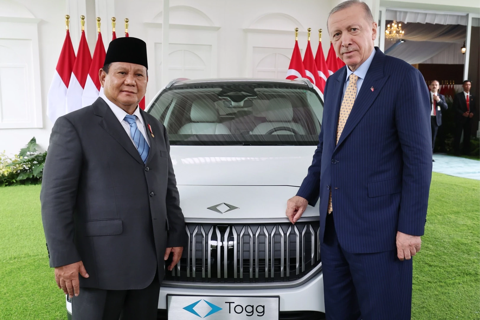 Cumhurbaşkanı Erdoğan'ın Güney Asya turu kapsamında bugün gerçekleştirdiği Endonezya temaslarında Cumhurbaşkanı Subianto'ya Türkiye'nin yerli ve milli elektrikli otomobili Togg'u hediye etti.