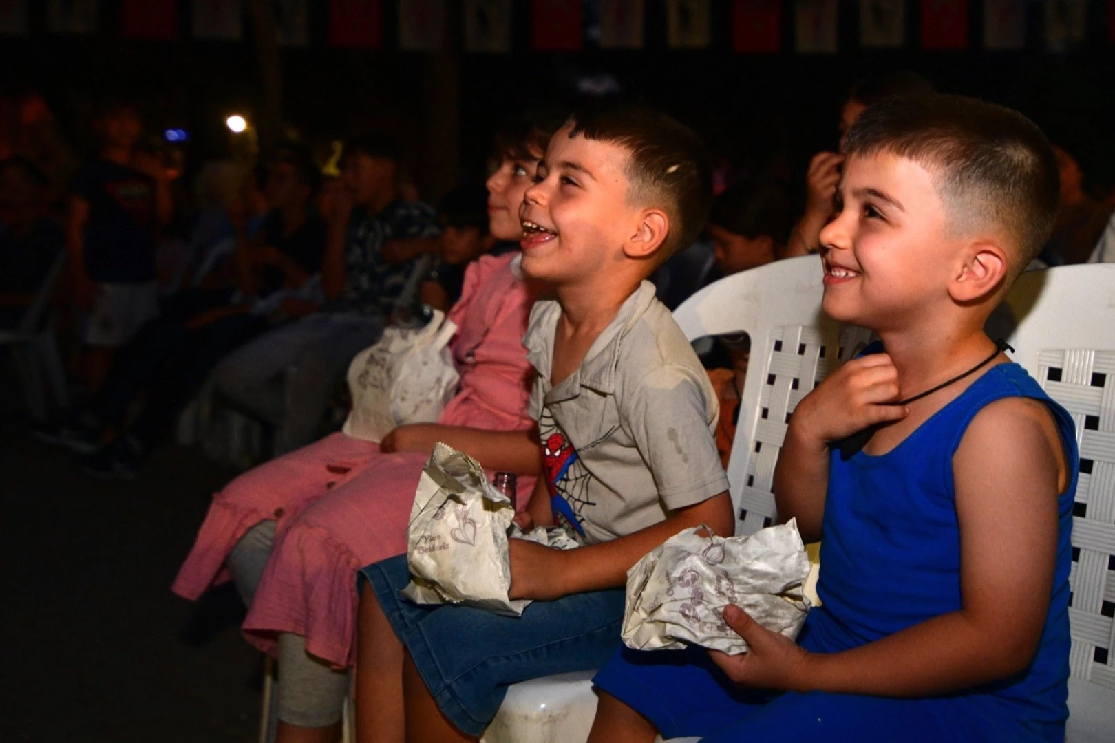 İZMİR (İGFA) - Bornovalıların her yaz heyecanla beklenen etkinliklerden olan Yaz Açıkhava Sinema Günleri, Büyükpark’ta “Kolonyo Cumhuriyeti” filmiyle başlamıştı. Etkinliğin ikinci durağı olan Pınarbaşı Çamlık Parkı’nda bu kez kahkaha tufanı “Hedefim Sensin” filmiyle yaşandı. Mahalle halkı yaz akşamının tadını gazoz ve patlamış mısır eşliğinde çıkarırken, aileler ve komşular birlikte nostalji dolu bir sinema keyfi yaşadı.
