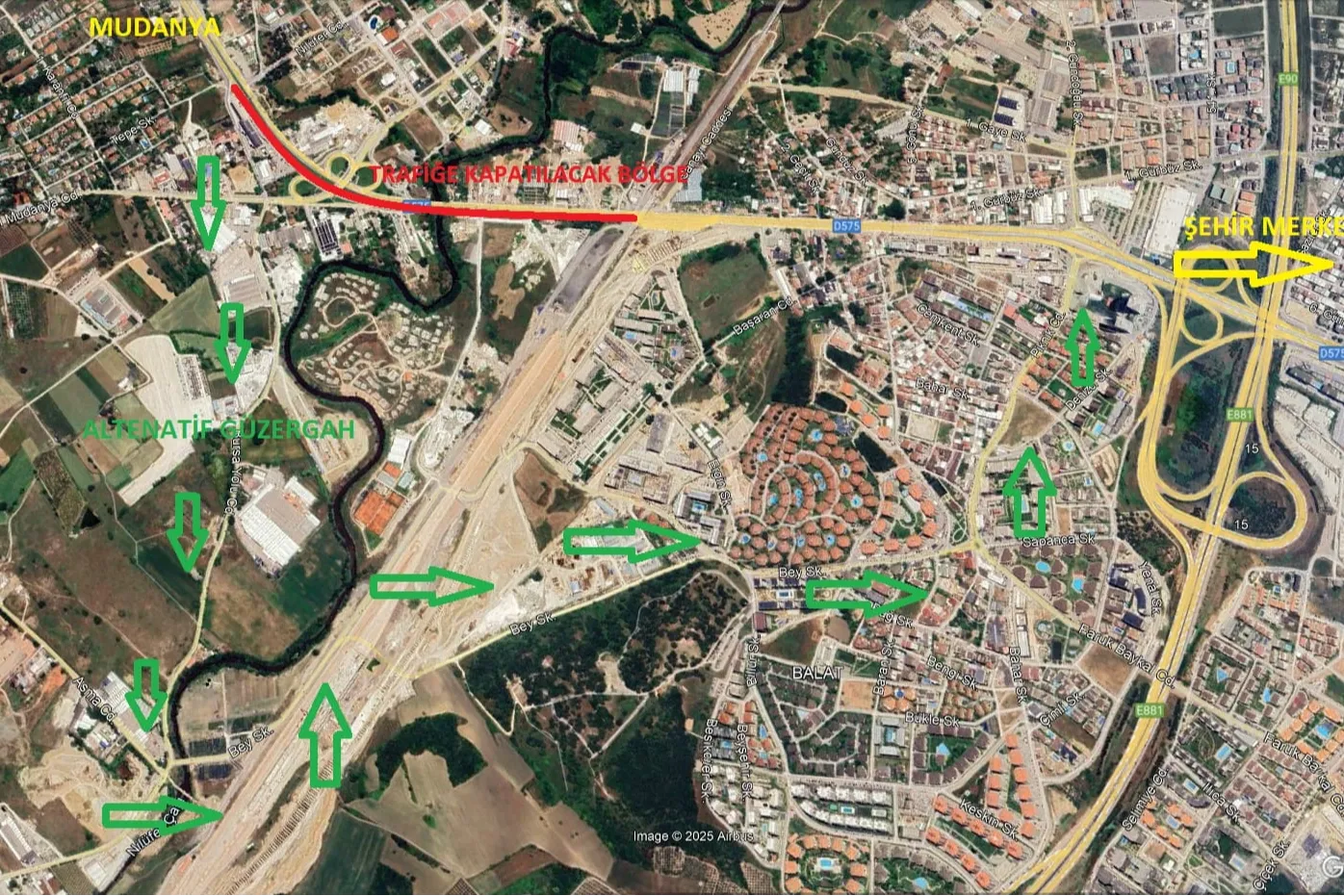 Montaj çalışmalarına 05 Ocak 2026 Pazartesi gecesi başlanacak olup, çalışmaların 5 gece sürmesi planlanmaktadır. Çalışmalar süresince, 00.00 – 06.00 saatleri arasında Mudanya–şehir merkezi istikametindeki yol trafiğe kapatılacaktır.