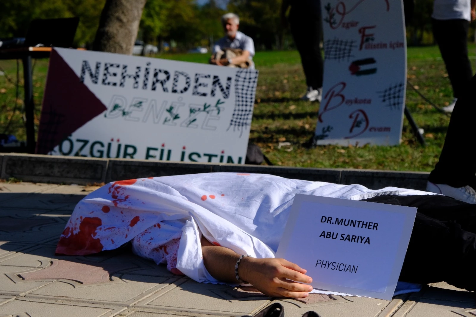 BURSA (İGFA) - Özellikle son 1 yıldır Filistin halkına karşı artarak devam eden İsrail saldırılarının yıldönümünde, Uludağ Üniversitesi Tıp Fakültesi öğrencileri yaptıkları eylemle zulüm altında görevlerini yapmaya çalışan sağlık çalışanları ve basın mensuplarının yaşadıkları insani zorluklara dikkat çektiler. Gazze’de yaşanan savaş ortamını simülasyonla canlandırmak üzere düzenlenen alana kana bulanmış çocuk kıyafetleri, oyuncaklar ve kefenlenmiş sağlık çalışanları ile basın mensupları yerleştirildi. Ses sistemi yardımı ile bomba, füze ve silah seslerinin yankılandığı alanda yaklaşık 2 saat süren eylem büyük ilgi gördü.