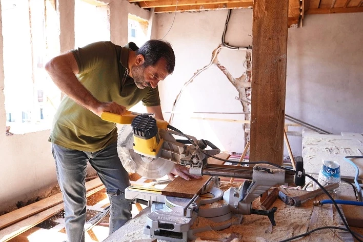 Bursa Gürsu'da Başkan Işık kütüphane inşaatında çalışıyor! Hem denetledi, hem çalıştı
