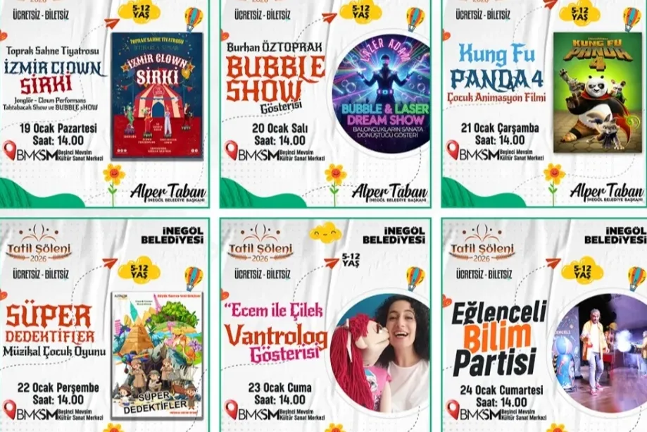İnegöl Belediye Başkanı Alper Taban, ara tatilde çocukların keyifli ve verimli vakit geçirmesini önemsediklerini belirterek, “Çocuklarımızın yüzünü güldürecek, hayal dünyalarını geliştirecek ve güzel anılar biriktirecekleri bir tatil programı hazırladık. Tüm çocuklarımızı Tatil Şöleni 2026 etkinliklerimize davet ediyorum.” dedi.