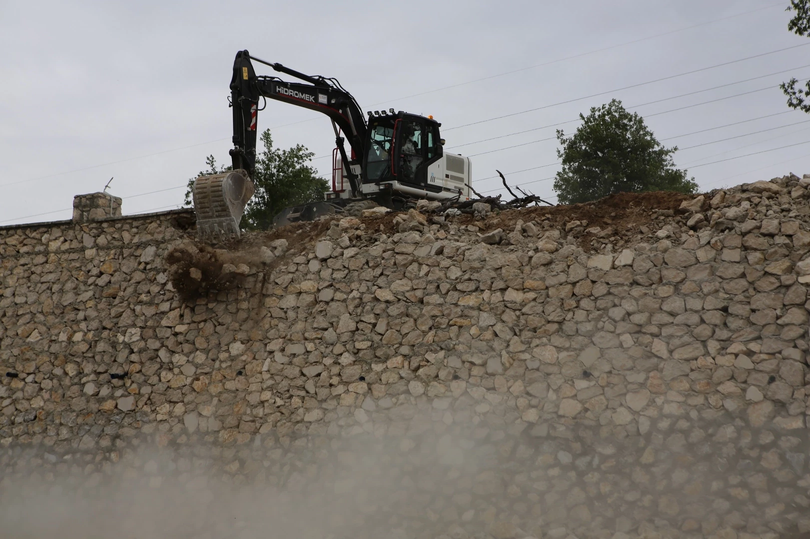 Nilüfer Belediyesi yıkım ekipleri, Dağyenice Mahallesi’nde 3 bin 800 metrekarelik taş duvarı izinsiz yapıldığı gerekçesiyle yıktı.