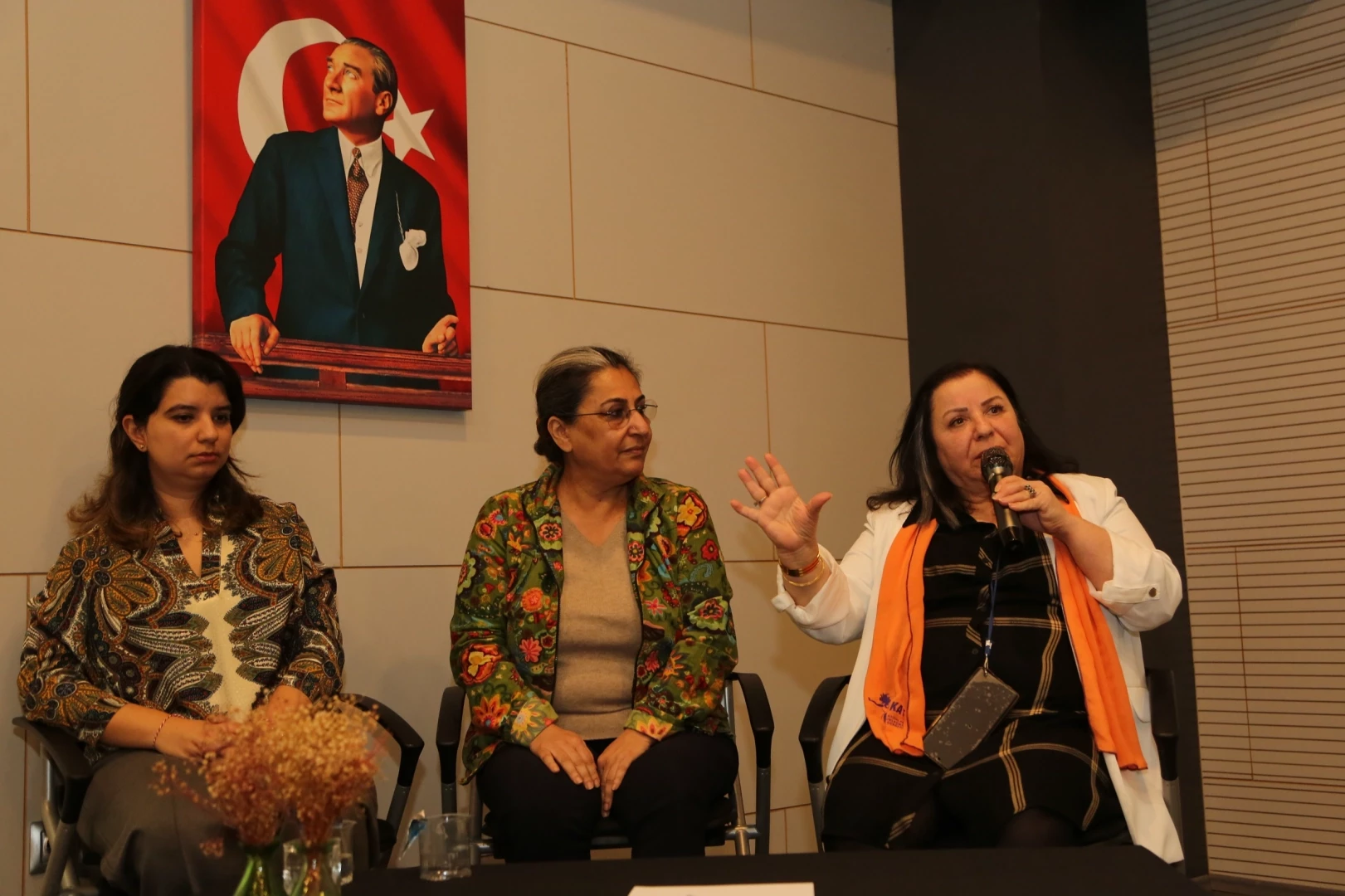 Söyleşinin ilk oturumunda, Mor Salkım Kadın Dayanışma Derneği Yönetim Kurulu Üyesi Avukat Aybüke Çakırel Şenzek, Koza Kadın Derneği Başkanı Nursel Demir, GÜÇ KAT Dezavantajlı Kadınlar Sosyal Yardımlaşma ve Dayanışma Derneği Başkanı Gülay Çelenk konuşma yaptı.