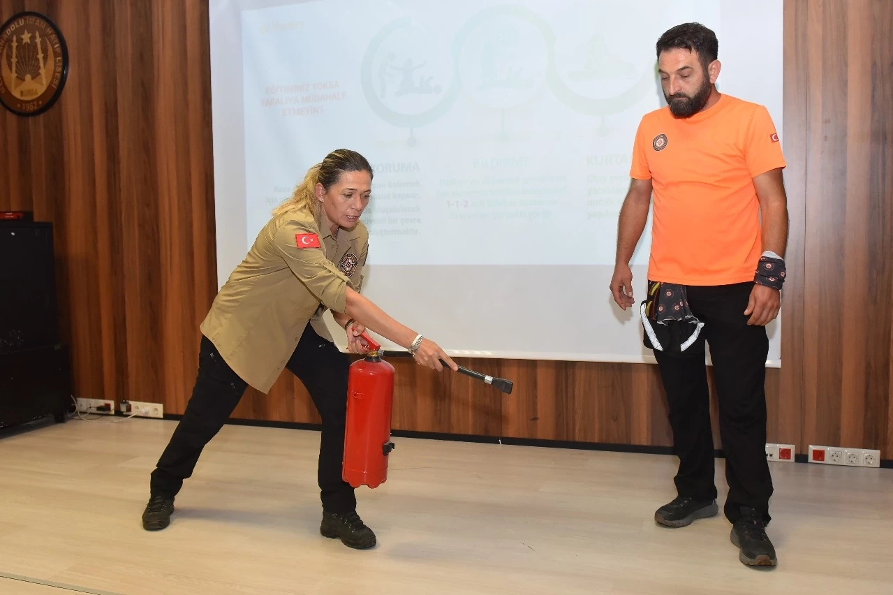 BURSA (İGFA) - Afetlere karşı ekip, ekipman ve araçlarını her an hazır durumda bekleten Yıldırım Belediyesi, ilçedeki kamu kurumları, vatandaşlar ve öğrencilere de afet farkındalık eğitimleri veriyor.