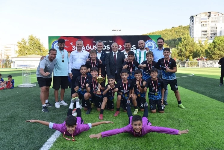 BURSA (İGFA) - 30 Ağustos Zafer Bayramı’nda, spor ve milli bilinci aynı sahada buluşturan Bursa Yıldırım Belediyesi, düzenlediği, ‘30 Ağustos U-12 Yaş Futbol Turnuvası’ ile ilçede futbol şöleni yaşattı. Fidyekızık Spor Tesisi’nde düzenlenen turnuvaya 22 takım ve 350 sporcu katıldı. 5 grup şeklinde oynanan turnuva kıran kırana maçlara sahne oldu. Kardeşlik, dayanışma ve centilmenlik ruhu içinde geçen mücadelelerin ardından; 1. Grup’ta Arabayatağı Spor, 2. Grup’ta Yolspor, 3. Grup’ta Kentspor, 4. Grup’ta Millet Göçmen Spor, 5. Grup’ta ise Karapınar Spor şampiyonluğa ulaştı. Turnuvanın en centilmen takımı ise Samanlıspor oldu.