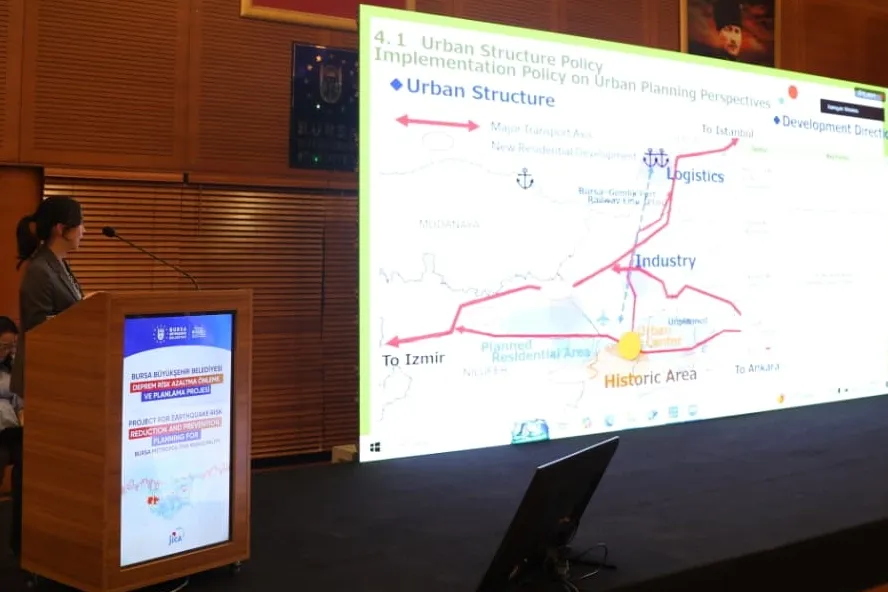 JICA ekibinden Masashi Inoue, bina risk değerlendirmesi, alt yapı ve kamu binaları risk değerlendirmesi, organize sanayi bölgeleri risk değerlendirmeleri hakkında sunum yaptı. Murat Akdaş, Shinichi Fuksawa, Rena Koseki, Tomoko Shaw ve Kaho Kodama ise kentsel dirençlilik planının içeriği ve amacı, diğer planlarla ilişkisi ve kurumların sorumlulukları hakkında bilgi verdi. Program, toplu fotoğraf çekimiyle sona erdi.