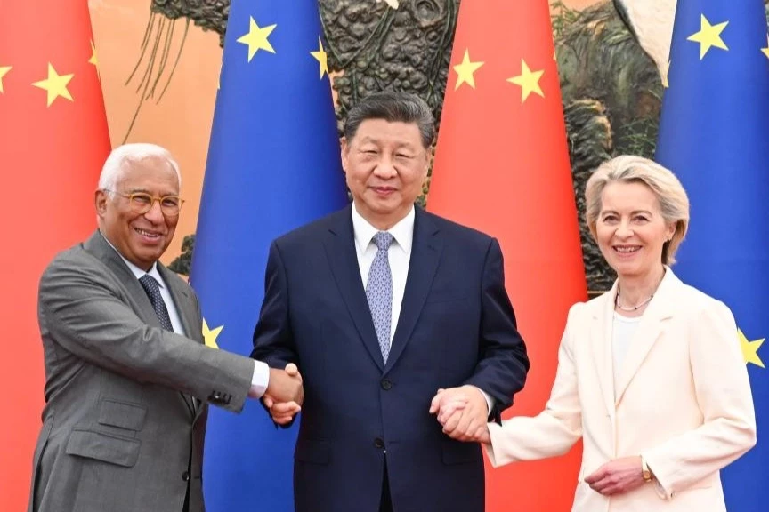 Açıklamada Çin ile Avrupa Birliği arasındaki diplomatik ilişkilerin 50. yılına ulaştığına değinen Çin Devlet Başkanı Xi Jinping, Çin-AB ilişkilerinin kiritik bir tarihsel dönemece girdiğini belirtti. Avrupa Konseyi Başkanı Antonio Costa ile Avrupa Komisyonu Başkanı Ursula von der Leyen'i Pekin'deki Büyük Halk Salonu'nda ağırlayan Xi, Çin ile AB arasında temel bir çıkar çatışması veya jeopolitik karşıtlık bulunmadığının da altını çizdi.