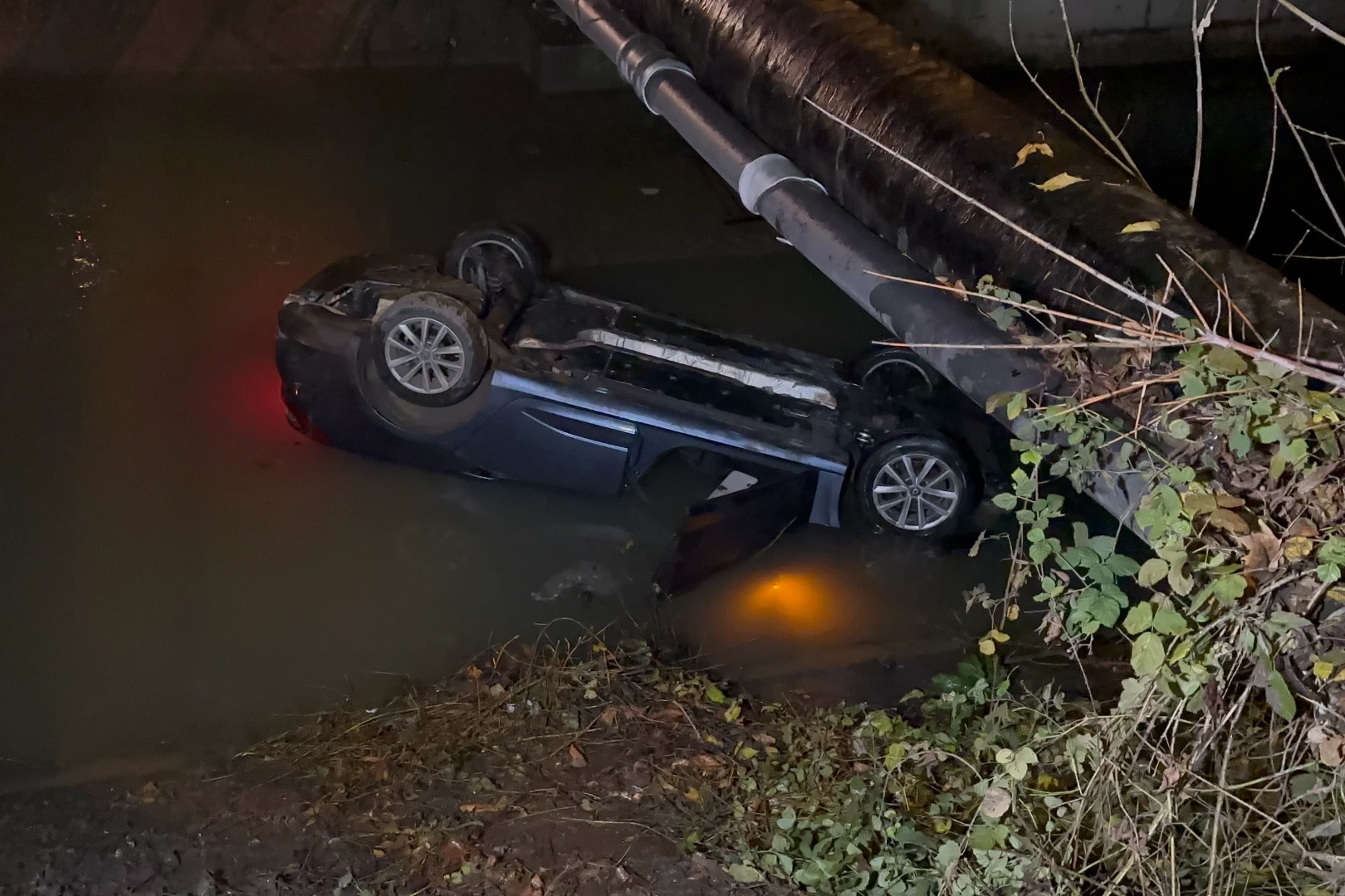 Düzce Zonguldak bağlantı yolu Karaca kavşağında sürücüsünün direksiyon hakimiyetini kaybetmesi sonucu bir otomobil dereye devrildi.