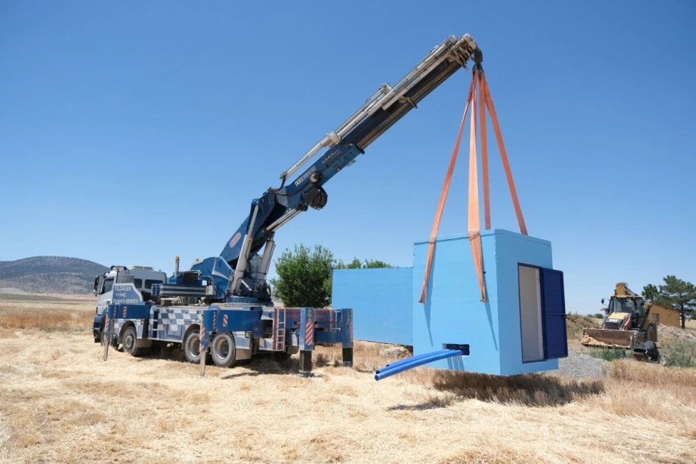 ESKİŞEHİR (İGFA) - Eskişehir Büyükşehir Belediyesi'nin içme suyu arz güvenliğini artırmak, bölgesel ihtiyaçlara hızlı ve sürdürülebilir çözümler sunmak amacıyla yürütülen çalışmalar doğrultusunda, Alpu ilçesinde Osmaniye, Arıkaya, Söğütcük ve Çerkez Çukurhisar mahalleleri ile ilçe merkezinde modüler su depoları kurulumu tamamlandı. Ayrıca; Beylikova ilçesinde Doğray Mahallesi, Sarıcakaya ilçesinde İğdir Mahallesi, Sivrihisar ilçesinde Yahşiyan Yaylası, İlyaspaşa ve Babadat Mahalleleri, Günyüzü ilçesinde Yeşilyaka Mahallesi, Mihalıççık ilçesinde Yunusemre ve Gürleyik Mahalleleri, Çifteler ilçesinde Dikilikaya Mahallesi, Tepebaşı ilçesinde Çalkara ve Yarımca Mahalleleri ile İnönü ve Han ilçelerinde de içme suyu şebekesiyle entegre çalışan prefabrik beton su depolarının kurulumu tamamlanarak faaliyete geçirildi.