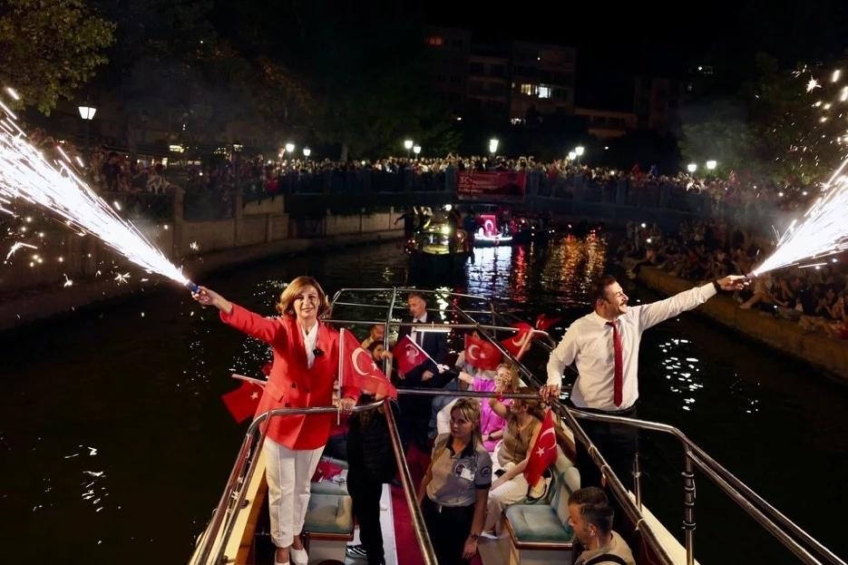 Etkinlikler kapsamında Porsuk Çayı’nda düzenlenen Fener Alayı’na, Eskişehirliler büyük ilgi gösterdi. Porsuk Çayı üzerindeki köprülerde ve kıyılarda yerini alan binlerce Eskişehirli büyük coşkuya ortak oldu.