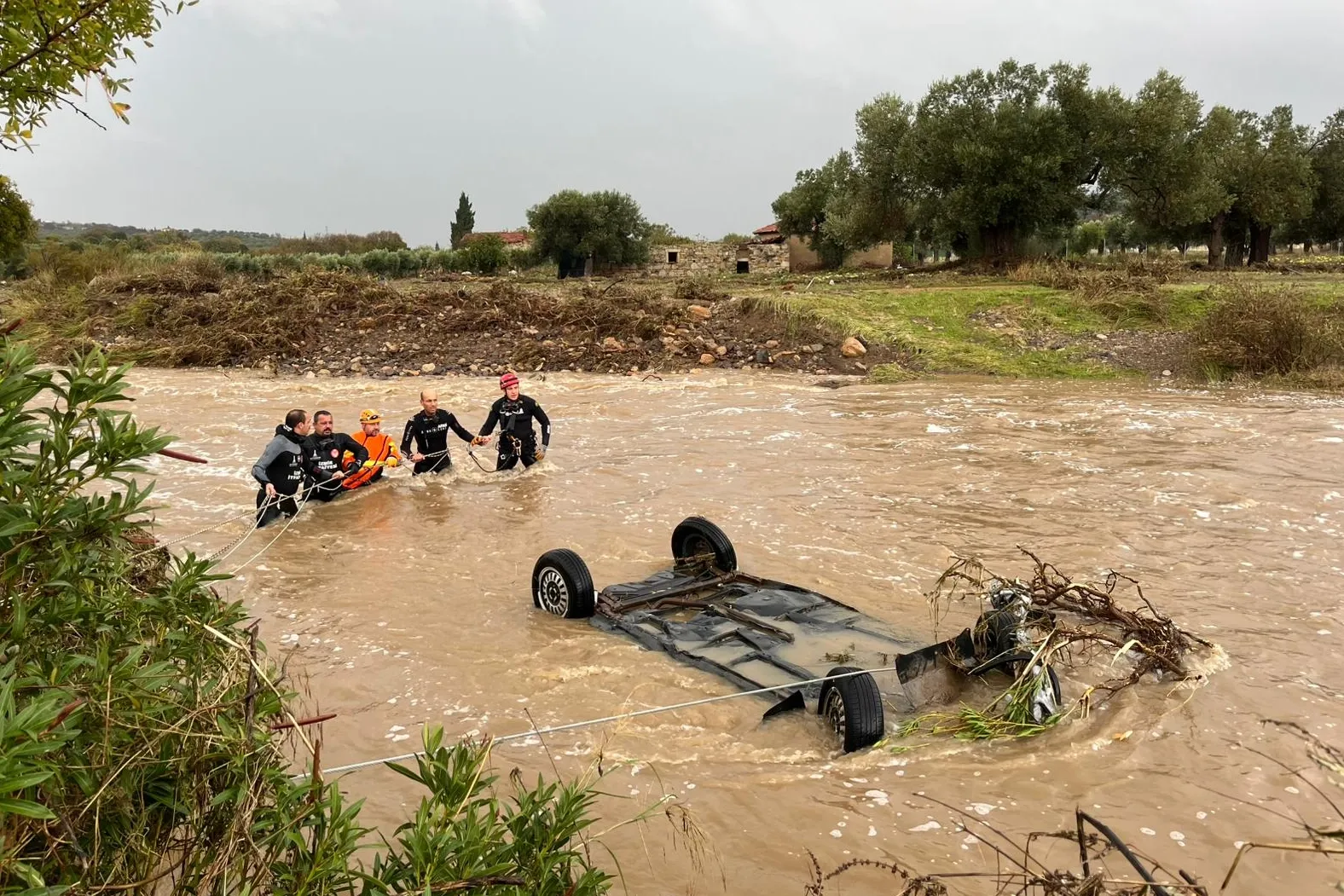 Yağışın etkili olduğu bölgede bir aracın sel sularına kapılarak Bucak Deresi’ne düştüğü öğrenildi. Araçta birilerinin olma ihtimaline karşı İzmir İtfaiyesi ekipleri araç içerisinde ve derede arama kurtarma çalışmaları sürdürüyor.