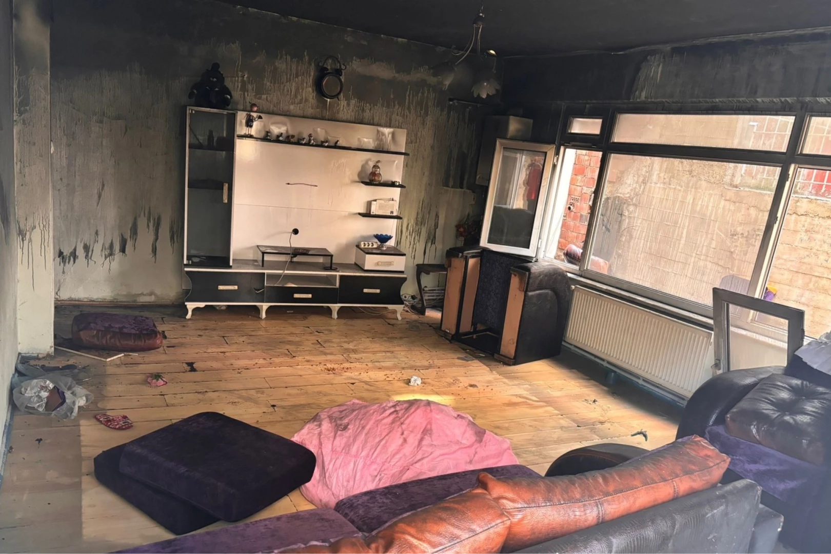 Gölcük Belediyesi ekipleri, Merkez Mahallesi’nde bir binada çıkan yangında büyük hasar gören evde temizlik çalışması yaptı.