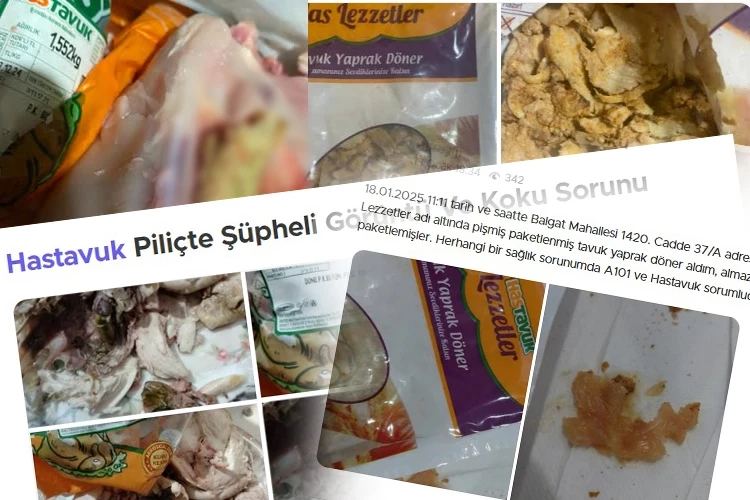 18 Ocak tarihinde bir marketten aldığı Hastavuk pişirilmiş tavuk yaprak döner aldığında şoka girdiğini belirten başka bir kişi ise ‘keşke almaz olsaydım’ dedi. Pişmiş ve paketlenmiş tavuğun içinden çıkan şeyi fotoğraflarla kanıtlayan vatandaş, “Tavuk pişmemiş, çiğ çiğ paketlemişler. Herhangi bir sağlık sorunumda A101 ve Hastavuk sorumludur.” notunu düştü.