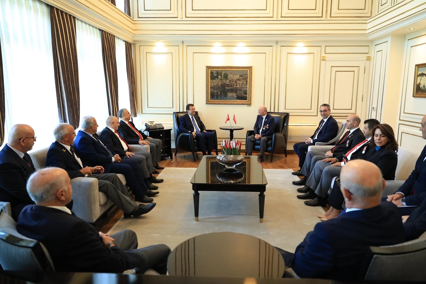 İSTANBUL (İGFA) - İstanbul Büyükşehir Belediye Başkanı Ekrem İmamoğlu; Türkiye Muharip Gazileri Derneği, Harp Malulü Gaziler Şehit Dul ve Yetimler Derneği, 15 Temmuz Derneği ile Emekli Subaylar Derneği başkan ve yöneticilerini, Saraçhane’deki makam odasında ağırladı.
