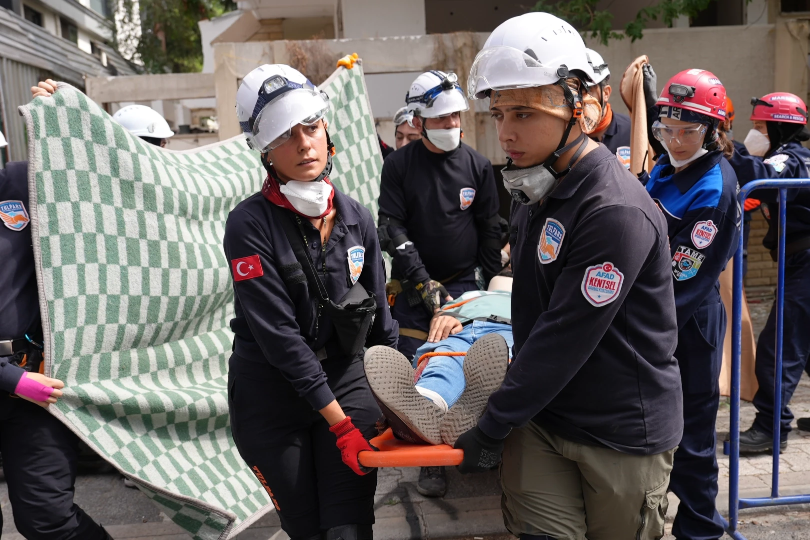 Burada sesli ve fiziki arama gerçekleştirildi. Yaralılara ulaşılınca gerekli malzemelerle birlikte müdahale gerçekleştirildi. Bu esnada sağlık ekipleri de senaryo gereği ayağı kırılan yaralılara müdahale etti. Yaralılar ambulanslarla hastanelere sevk edilirken üst katlarda yer alan yaralılar da ipler, halatlar ve merdivenlerle kurtarıldı.