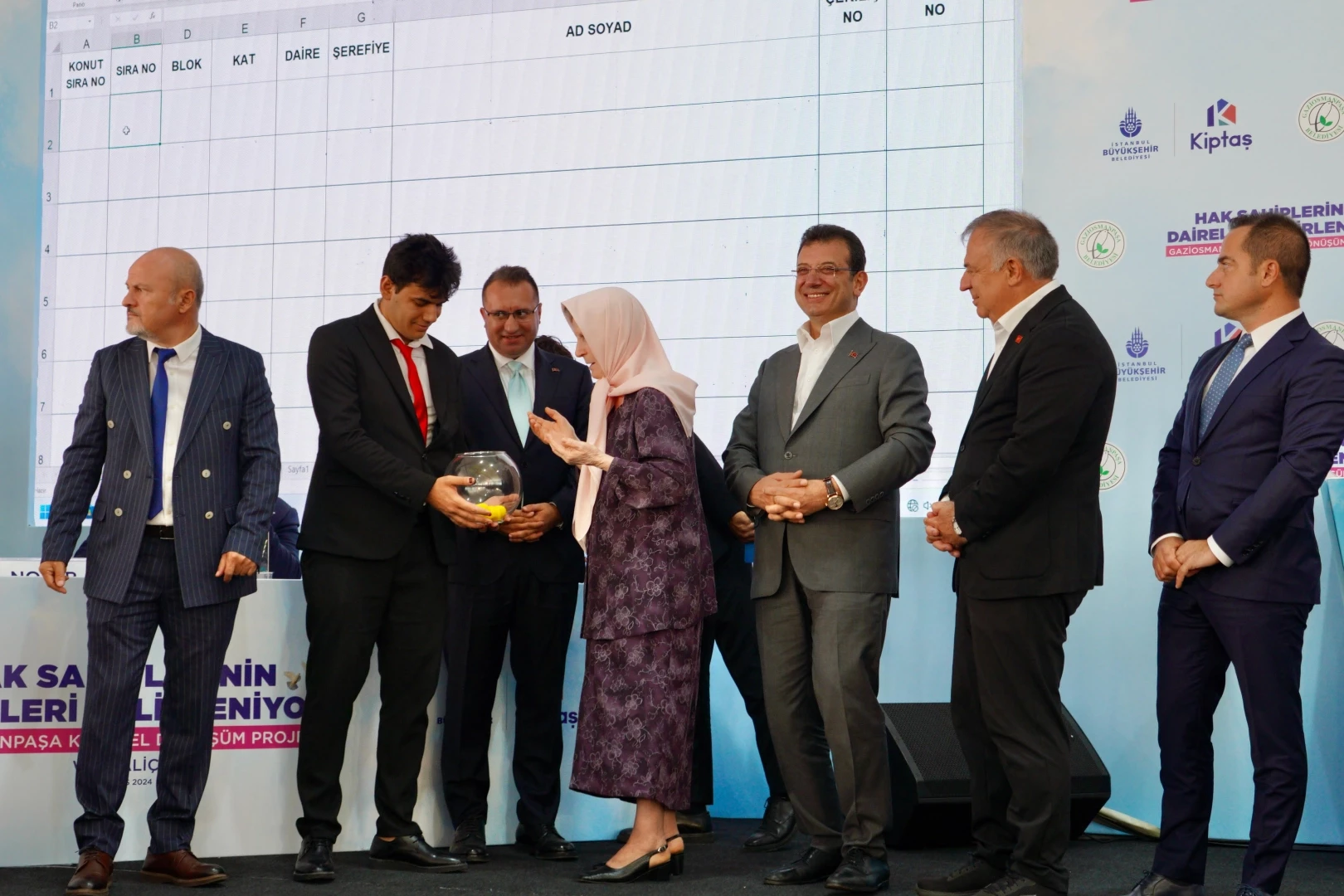 Konuşmaların ardından Bakırköy 23. Noter Başkatibi Nurettin Aytekin nezaretinde, tören kapsamında, 10 hak sahibinin belirlenmesi için çekilişlerine geçildi. Kamuoyunun, 24 Mart 2019’daki seçim kampanyası sırasında İmamoğlu’nun seçim otobüsünü, 4 tansiyonla, 4 kilometre boyunca takip etmesiyle tanıdığı, kendisi de Gaziosmanpaşa sakini olan 77 yaşındaki Müzeyyen Şahbaz da tören ve çekiliş boyunca İBB Başkanı’na eşlik etti.