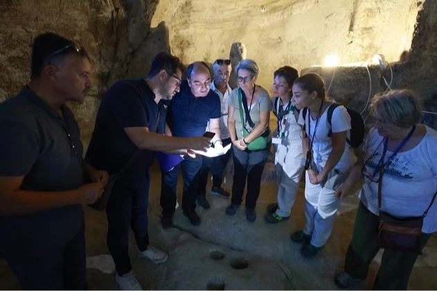 NEVŞEHİR (İGFA) - İtalya’nın Tuscia Üniversitesi’nde görev yapan ve Orta Çağ ve Bizans sanatı konusunda uzmanlaşmış önemli bir İtalyan sanat tarihçisi olan Prof. Dr. Maria Andolora, İtalya ve Doğu Akdeniz'deki Ortaçağ duvar resimleri ve mozaiklerinde kullanılan teknikler ve malzemeler üzerine uzman Doç. Dr. Paola Pogliani ve beraberindeki heyet Nevşehir’e geldi. Dünyanın farklı ülkelerinde tarihi ve kültürel varlıkların korunmasında önemli çalışmalar yürüten ve Kapadokya’daki Tokalı Kilisesi'nde yer alan fresklerin restorasyonu gibi uluslararası projelerde de görev alan heyet Nevşehir Belediyesi’nin daveti üzerine Tarihi Kayaşehir, Kaya Kilise ve Meryem Ana Kilisesi’nde incelemelerde bulundu.