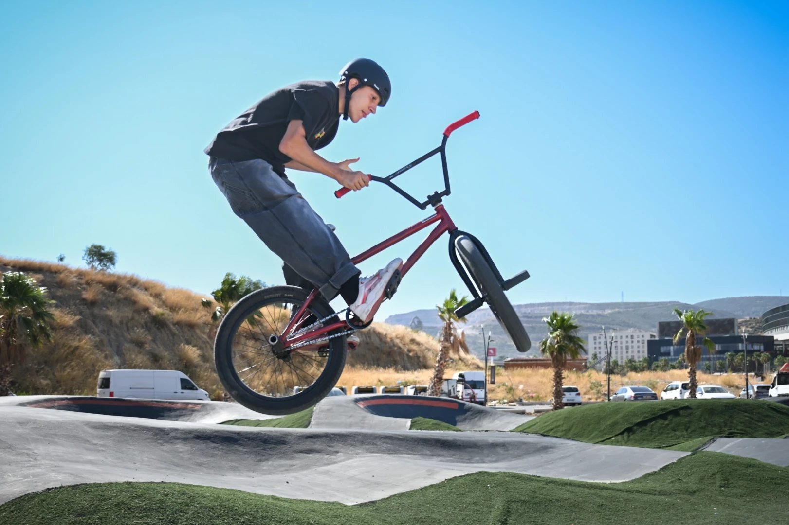 Yeşilova Mahallesi 4088 Sokak’ta yükselen proje, 11 dönümlük geniş alanda modern tasarımıyla dikkat çekiyor. Abide-i Hürriyet Meydanı ve KKTC Parkı gibi tematik alanların ardından hayata geçirilen parkta, pump track parkurları, güvenli sürüş alanları ve spor odaklı peyzaj düzenlemeleri yer alıyor. Çalışmaların tamamlanmasının ardından sadece çevre düzenlemesi yapılacak.