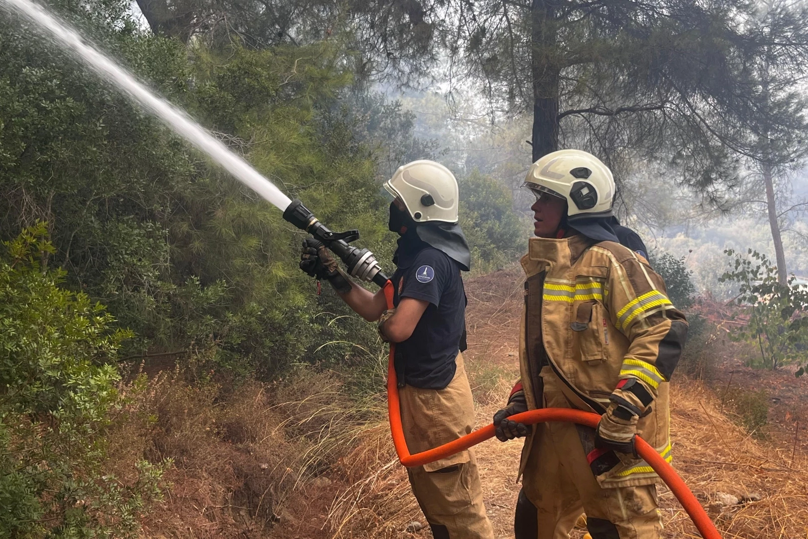 İzmir Büyükşehir Belediyesi İtfaiye ekipleri, 7 araç ve 21 personel ile yangın söndürme çalışmalarına katılıyor. Yangına müdahalede İzmir Orman Bölge Müdürlüğü ekipleri ise 25 araç, 4 uçak ve 3 helikopterle görev yapıyor. Alevlerin yerleşim alanlarına sıçramaması için ekipler yoğun çaba harcıyor.