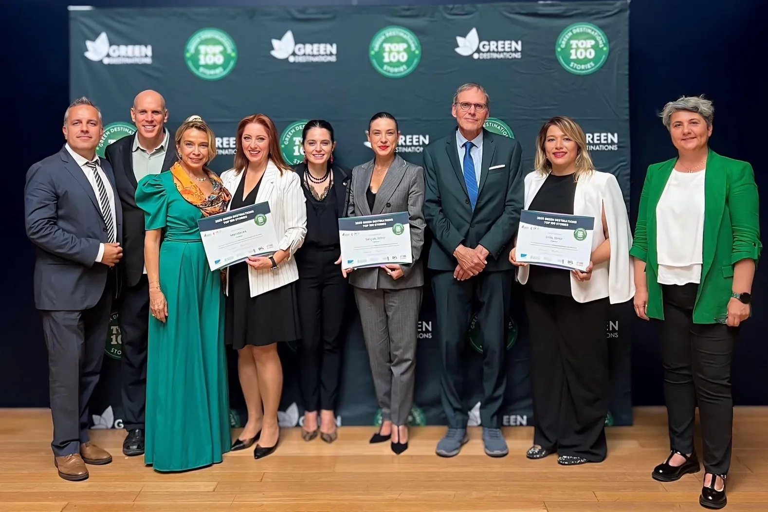 Green Destinations Uluslararası Konferansı kapsamında düzenlenen ödül töreninde, destinasyonlara sertifikaları teslim edildi. Ödül törenine Selçuk Belediye Başkanı Filiz Ceritoğlu Sengel, Urla Belediye Başkanı Selçuk Balkan, İzmir Büyükşehir Belediyesi Turizm ve Fuarcılık Komisyonu Başkanı Seyhan Müşerref Kuralı ve bürokratlar katıldı.