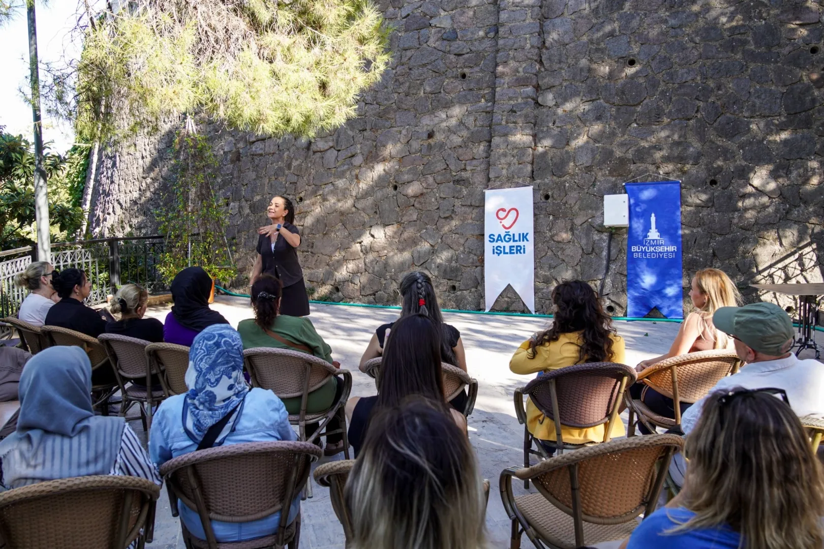 İZMİR (İGFA) - İzmir Büyükşehir Belediyesi, sağlık alanında bilinçlendirme ve koruyucu eğitim faaliyetlerini toplumun her kesimine ulaştırmaya devam ediyor. Bu kapsamda, Sağlık Eğitimleri Şube Müdürlüğü tarafından İzmir’in tarihi dokusunun önemli simgelerinden biri olan ve yakın zamanda İzmir Büyükşehir Belediyesi tarafından sosyal yaşam alanına dönüştürülen Şato'nun teraslarında "Bizim Mahalle Sohbetleri" başlatıldı.