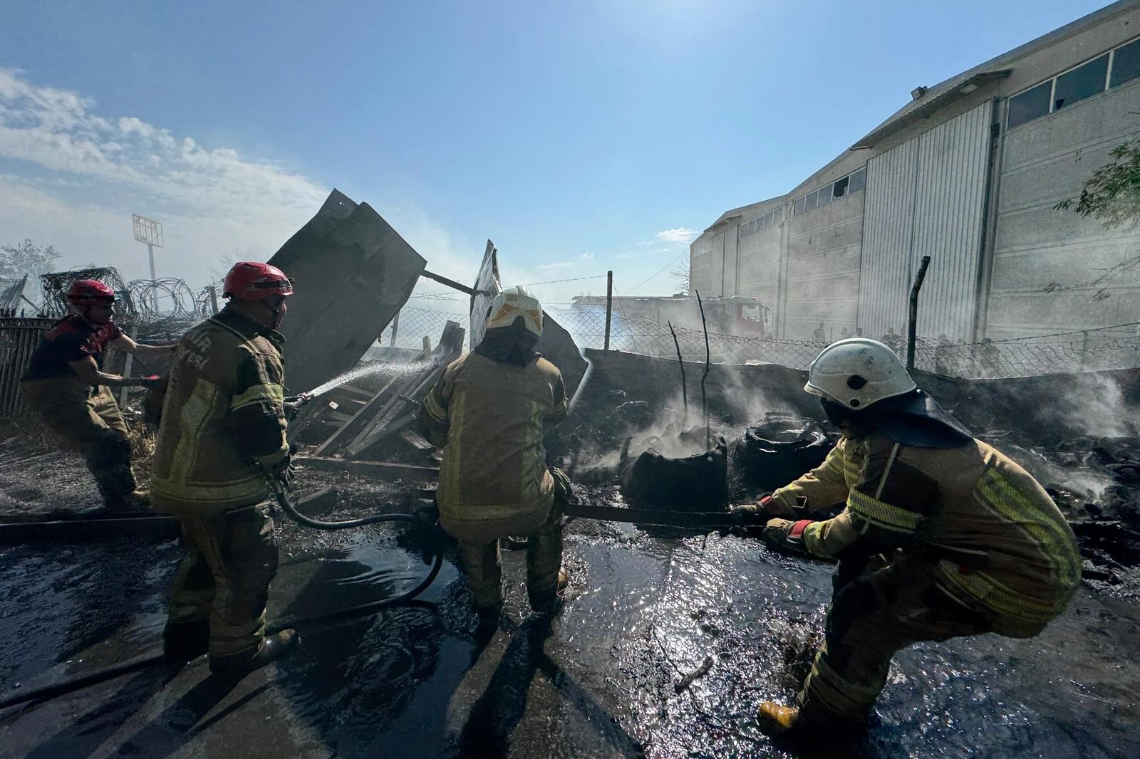 İzmir Büyükşehir Belediyesi İtfaiye ekipleri, İzmir Çanakkale Yolu Helvacı Kavşağında bulunan bir lastik deposunun çevresinde çıkan yangına müdahale etti. Yangın, işletmeye sıçramadan kontrol altına alındı.