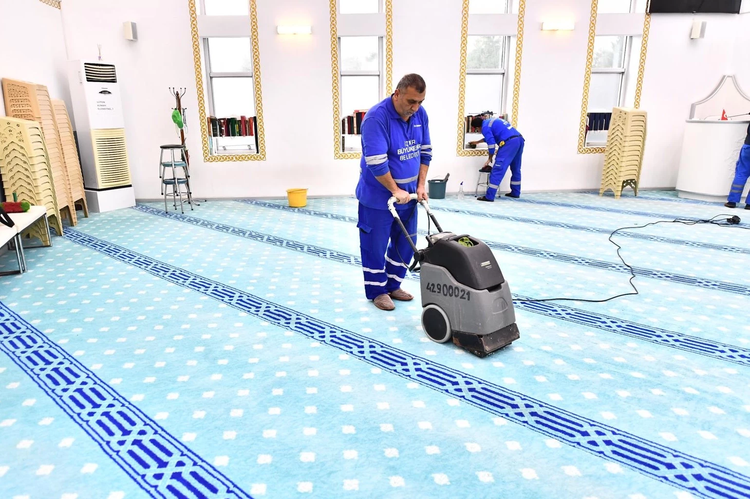 Kent genelinde camilerin, cemevlerinin ve ibadethanelerin temizliğini yaptıklarını dile getiren İZBETON İbadethane Temizlik Ekibi Sorumlusu Özkan Çiçek, “Ramazan ayı itibariyle camilerimizdeki temizlik çalışmalarımızı daha da artırdık. Camilerin camlarını, çerçevelerini, avizelerini, klima ve pervaneleri temizliyoruz. Halıları yıkıyoruz. Camideki her yeri A’dan Z’ye temizliyoruz. Vatandaşlarımızın sağlıklı bir şekilde ibadetini yapabilmesi için çalışmalarımıza devam edeceğiz” diye konuştu.