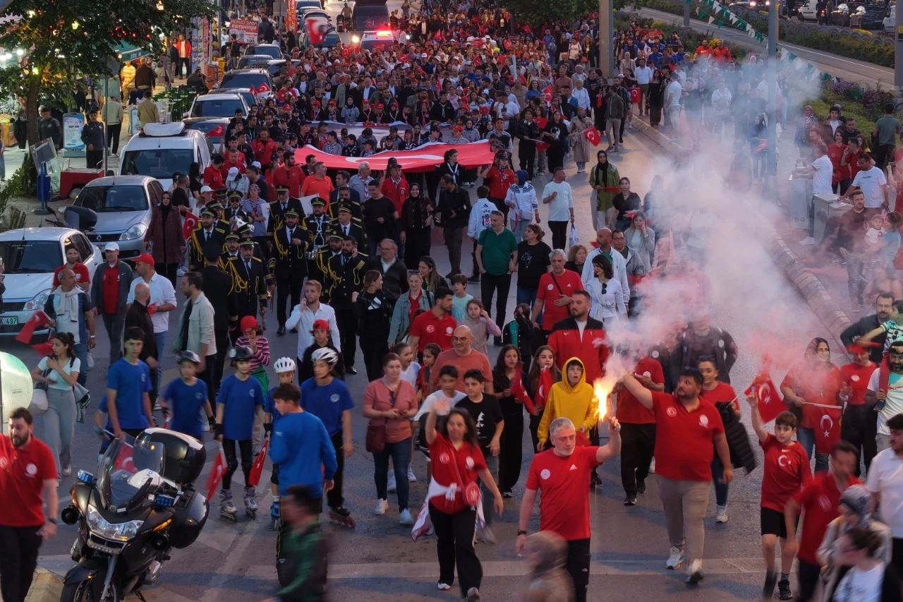 KOCAELİ (İGFA) - Kocaeli Büyükşehir Belediyesi tarafından 2022 yılında yaptırılan ve yaklaşık 1,5 km uzunluğunda olan; İzmit Merkez Bankası önünden başlayarak Milli İrade Meydanı’na kadar uzanan Cumhuriyet Bulvarı bu akşam tarihi günlerinden birini yaşadı. Kocaeli Büyükşehir Belediyesi tarafından 19 Mayıs Atatürk’ü Anma, Gençlik ve Spor Bayramı kutlamaları kapsamında bu akşam Cumhuriyet Bulvarı’nda “19 Mayıs Korteji” yürüyüşü yapıldı. Vatandaşların yoğun ilgi gösterdiği yürüyüşe binlerce kişi katıldı. Kortejin başı Milli İrade Meydanı’na ulaştığında ucu gözükmüyordu, başlangıç noktası Merkez Bankası önüne kadar uzanıyordu. Kocaeli Valisi İlhami Aktaş ile Kocaeli Büyükşehir Belediye Başkanı Doç.Dr.Tahir Büyükakın’ın da katıldığı kortejde Türk Bayrağı ve Atatürk posterleri taşındı. Kortejin tamamı alana ulaşana kadar saatler geçti. Alandaki Fatma Turgut konseri kortejin sonu alana ulaşana kadar başlamadı. Kortejin alandaki kalabalıkla buluştuğu anlar görülmeye değerdi.