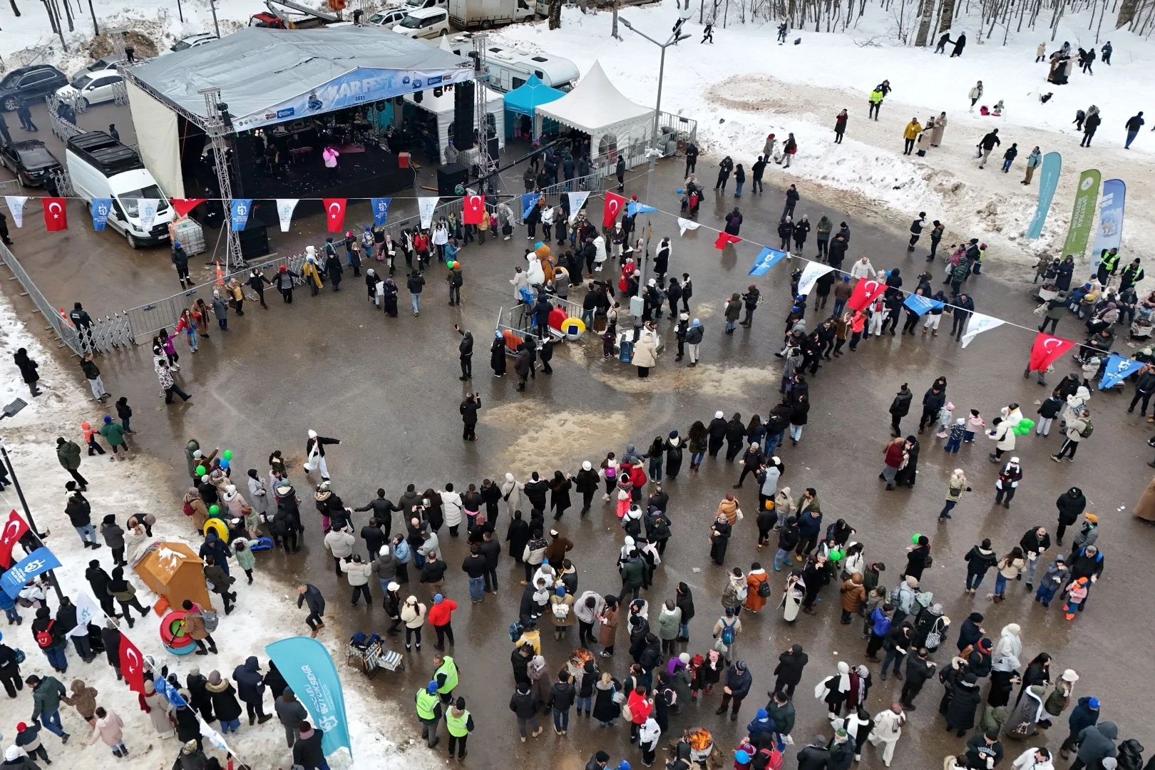 Kocaeli Büyükşehir Belediyesi öncülüğünde organize edilen KARFEST 2025’te misafirler birbirinden farklı alan etkinliklerine katılarak gönüllerince eğleniyor. Çevre illerde de yoğun ilgi gören KARFEST’te kendini müziğin ritmine bırakanlar kar üstünde keyif dolu anlar geçiriyor. Bir yandan etkinliklere katılan misafirler bir yandan da müzik eşliğinde günün tadını çıkarıyor. Öğe saatlerinde başlayan etkinlikler hız kesmeden devam ederken birbirinden farklı organizasyonlar katılımcıların içini ısıtıyor.