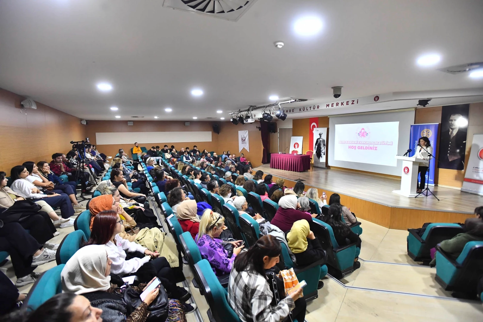 Keçiören Belediyesi ile Eğitim Hayallerine İnananlar Rotary Kulübü iş birliğinde “Meme Kanseri Farkındalık Semineri” düzenlendi. Yunus Emre Kültür Merkezi’nde düzenlenen seminerde meme kanserinde tanı ve erken teşhisin önemi katılımcılara aktarıldı. Kadınların yoğun katılım gösterdiği seminere Keçiören Belediyesi Başkan Yardımcısı Emir Can Tunç, CHP Kadın Kolları Genel Sekreteri Armağan Akyüz, CHP Kadın Kolları Genel Başkan Yardımcısı Figen Gündoğdu, CHP Ankara İl Başkan Yardımcısı Meryem Bozkurt, CHP Ankara İl Kadın Kolları Başkanı Ayça Çağlar, Eğitim Hayallerine İnananlar Rotary Kulubü Kurucu Başkanı Av. Funda Ünlü, mahalle muhtarları, siyasi parti ve sivil toplum kuruluşu temsilcileri katıldı.
