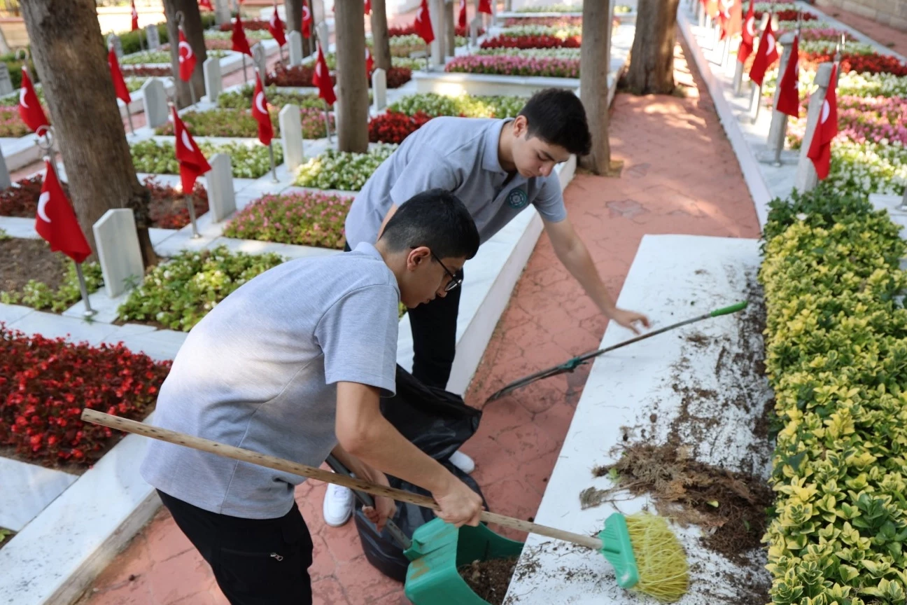 KOCAELİ (İGFA) - Kocaeli Büyükşehir Belediyesi Park ve Bahçeler Dairesi Başkanlığı’na bağlı Mezarlıklar Şube Müdürlüğü’nün organizasyonunda Bağçeşme Namazgâh Şehitliği’nde anlamlı bir etkinlik yapıldı. Necip Fazıl Kısakürek Anadolu İmam Hatip Lisesi öğrencilerinden gelen talep üzerine düzenlenen ziyarette gençler, hem şehitlerimizi dualarla andı hem de temizlik çalışmasına katılarak örnek bir davranış sergiledi.