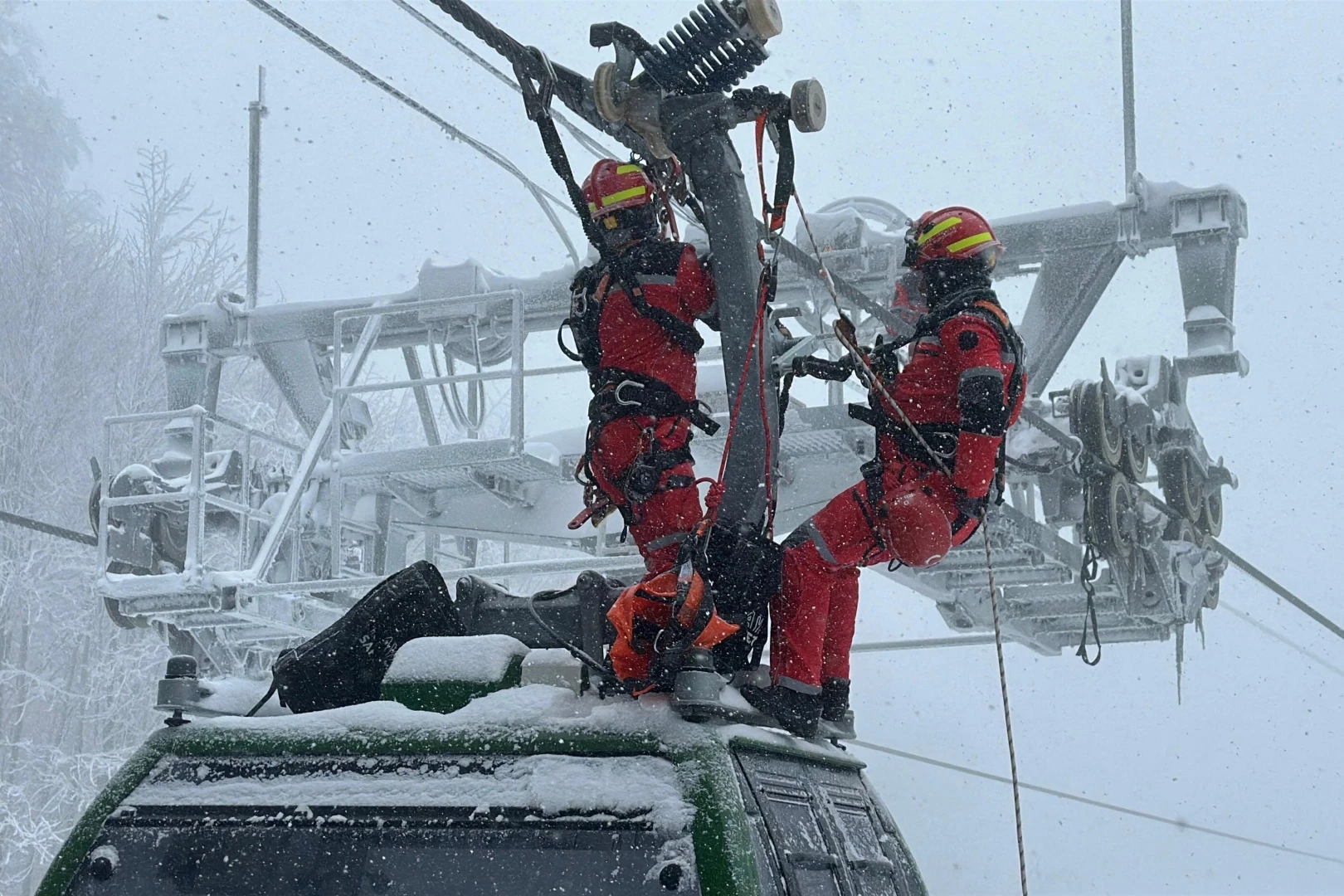 Yoğun kar yağışı altında gerçekleştirilen eğitimde itfaiye personelleri, iki direk arasında kalan kabin içerisindeki insanları kurtarmak için kabinleri taşıyan tellerden kabine ulaşım sağladı. Gerekli önlemleri alan itfaiye ekipleri, kabin içerisinde kalan vatandaşları başarılı bir şekilde tahliye etti.
