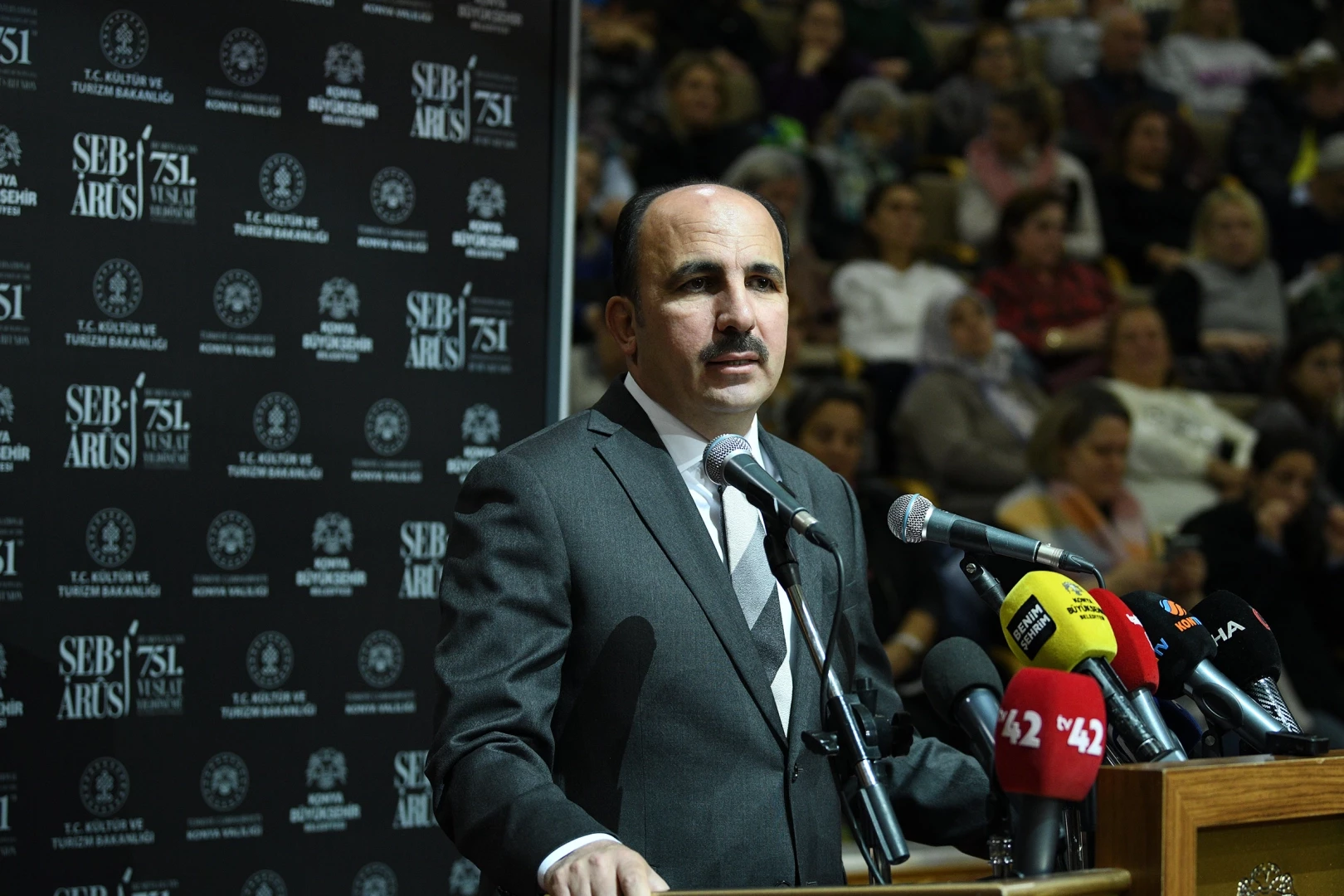 UNESCO’nun İnsanlığın Somut Olmayan Kültürel Mirası Listesi'nde olan Mevlevi Sema Törenlerinin yaşatılmasına ve Mevlana’nın barış mesajlarının tüm dünyaya aktarılmasına büyük katkı sağlayan Cumhurbaşkanı Recep Tayyip Erdoğan’a teşekkür eden Başkan Altay, “751. Vuslat törenleri için Hz. Mevlana’nın ‘Gel’ çağrısını yüreklerinde hissederek Selçuklu dârülmülkü Konya’ya akın eden ülkemizden ve tüm dünyadan misafirlerimize teşekkür ediyorum. Bu anlamlı törenleri gerçekleştiren tüm kurumlarımıza, etkinliklere katkı sağlayan değerli hocalarımıza ve sanatçılarımıza teşekkür ediyorum. Aynı zamanda törenlerin son günü olan Şeb-i Arus’a katılarak bizleri onurlandıran Türkiye Büyük Millet Meclisi (TBMM) Başkanımız Sayın Numan Kurtulmuş’a, Kültür ve Turizm Bakanımız Sayın Mehmet Nuri Ersoy’a da Konyalı hemşehrilerim adına şükranlarımı sunuyorum. Dünyanın içinden geçtiği bu buhranlı zamanlarda Konya olarak Hz. Mevlana’nın hoşgörü ve sevgi mesajlarını dünyaya yaymaktan, barışı ve kardeşliği anlatmaktan vazgeçmeyeceğiz” ifadelerini kullandı.