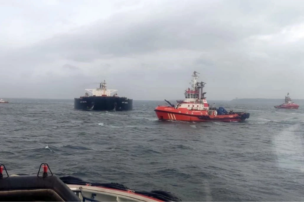 289 metre boyundaki kuru yük gemisi, ekiplerin çalışmasıyla Karanlık Liman'a demirletildi.