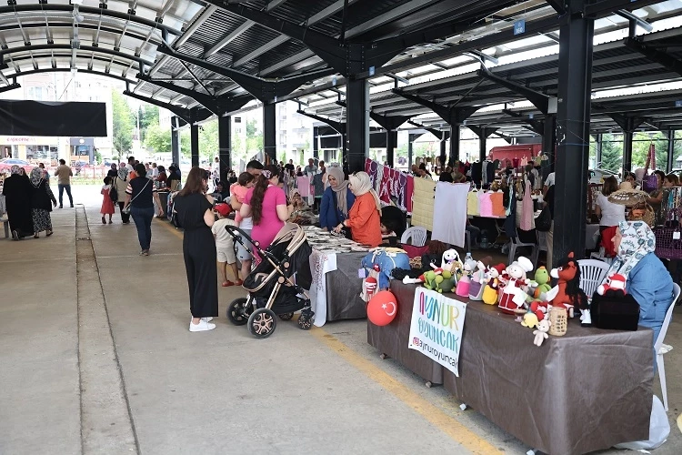 Ev hanımları tarafından hazırlanan birbirinden değerli el emeği işlerin sergilendiği pazarda el işi tekstil ürünlerinden kışlık yiyeceklere, ev yemeklerinden süs eşyalarına kadar pek çok ürün, satışa sunuluyor.