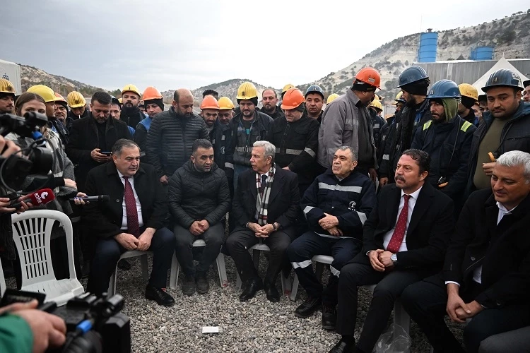 Ankara Büyükşehir Belediye Başkanı Mansur Yavaş, Çayırhan Termik Santrali’nde özelleştirmeye karşı greve giren 500 madenciyi ziyaret etti.