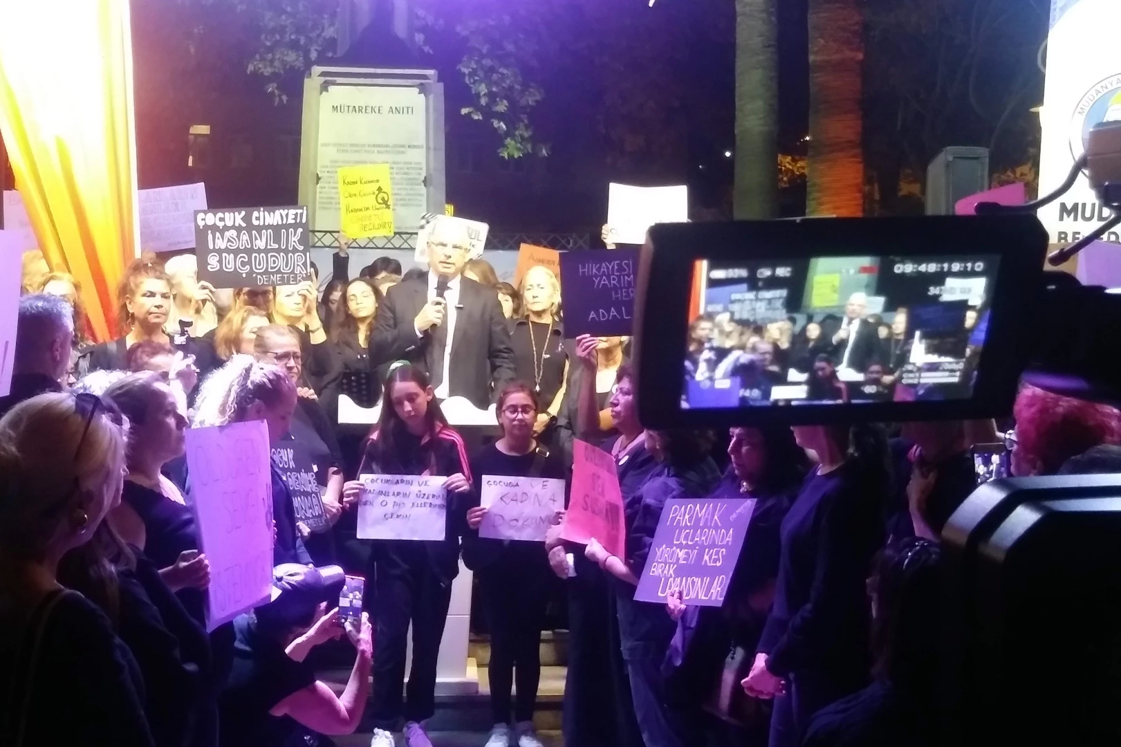 Kadına bakışın günden güne geriye gidiyor olması gerçekten üzücü olduğunu ifade eden Mudanya Belediye Başkanı Deniz Dalgıç ise, küçücük çocukların bile güvende olmadığını belirterek, bu sorunun çözümünün sadece kadına bırakılamayacağını söyledi. "Biz erkekler sorunun hem kaynağı, hem de çözümün en büyük parçasıdır" diyen Başkan Dalgıç, "Sokakta yürüyen yüzlerce insanın ortasında tacize uğratan da biz erkekleriz. Önlenmesi için çok büyük görev düşüyor. Bu çağrıya herkesi davet ediyorum" dedi. Açıklamalarda kadınlarımızın ve meydanda toplananların büyük çoğunluğunun 6284 Sayılı Yasaya dikkat çektiklerini söyleyen Başkan Dalgıç, "Büyük yanılgı içerisindeyiz. Bu iş sadece 6284 sayılı Ailenin Korunması ve Kadına Karşı Şiddetin Önlenmesine Dair Kanun'la çözülmez. Evet, önemli bir yasa, aile içi şiddetten bahsediyor ama Beyoğlu'ndaki hadise, maalesef 6284 sayılı yasanın kapsamına girmiyor. Adli vaka pozisyonunda! O nedenle bizim kadınlarımız sadece aile içinde değil, sokaklarda ve her yerdeki erkek teröründen mağdurlar. Dolayısıyla 6284 sayılı yasa yetmez. Bu konuda bizler daha kapsayıcı yasalar çıkarılmasını istiyor ve savunuyoruz" diye konuştu.