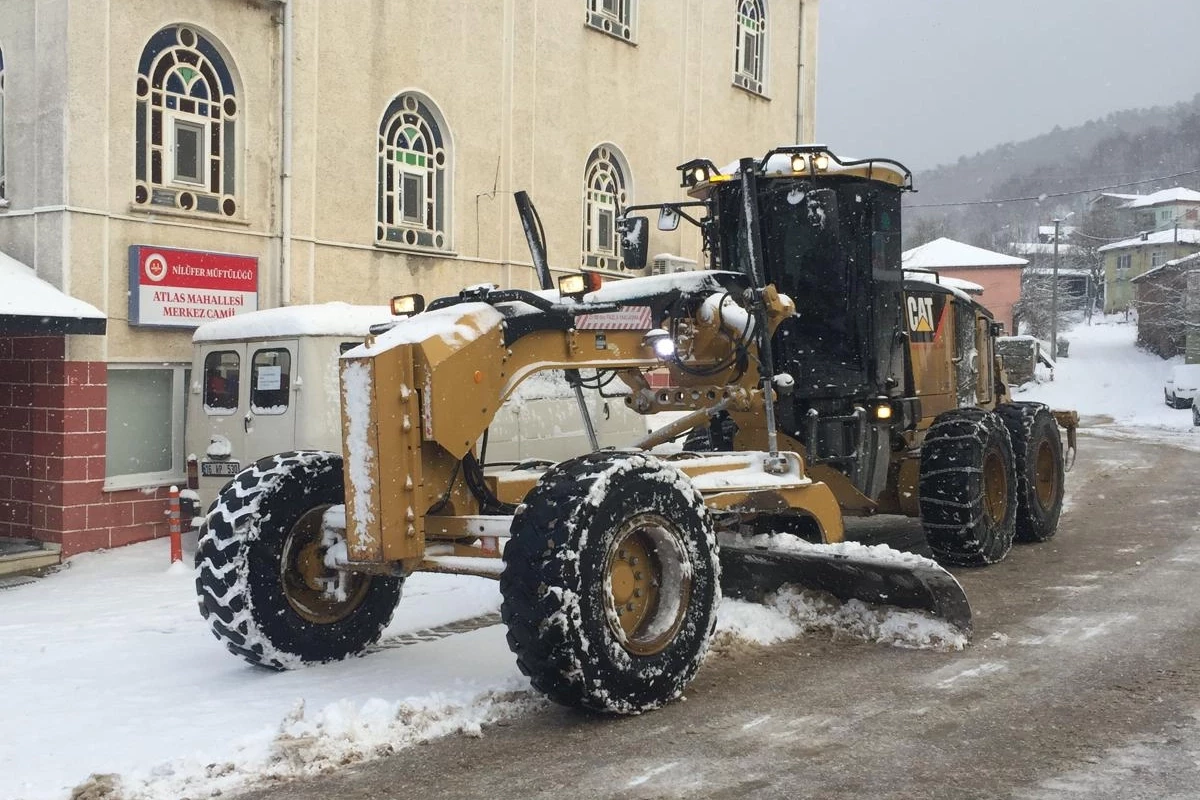 Nilüfer Belediyesi ekipleri, kar yağışı ve soğuk hava nedeniyle ilçe merkezinde ve kırsal mahallelerde buzlanan yolları açmak için seferber oldu.