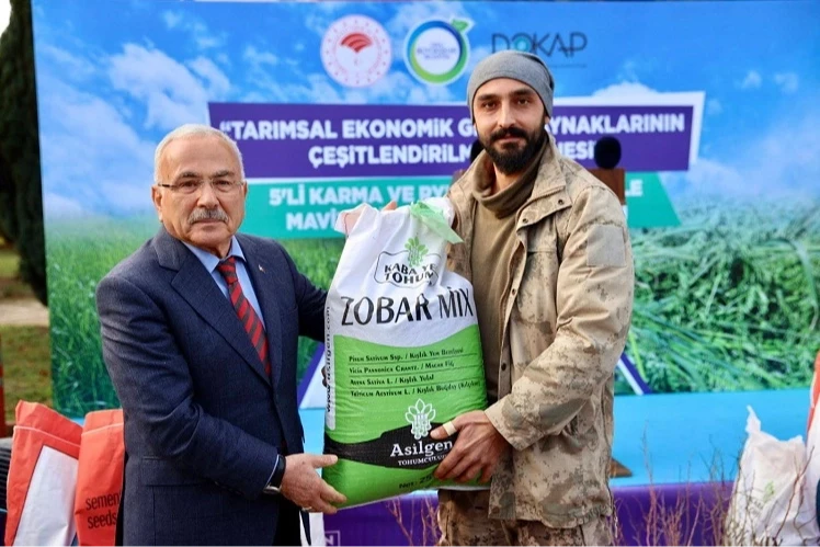 Ordu Büyükşehir Belediyesi, tarımsal üretimde çeşitliliği artırmak ve üreticilere ek gelir getirici faaliyetleri desteklemek amacıyla yaptığı DOKAP, Ordu İl Tarım Müdürlüğü iş birliğinde 25 ton 5’li karma yem, 3 ton ryegrass tohumu, 7 bin 500 adet mavi yemiş fidanı ve 25 bin metre damla sulama borusu desteğinde bulundu.