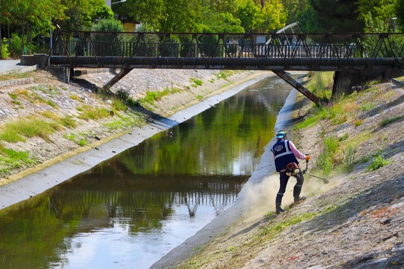 SASKİ, Çark Deresi’nin çevresinde bulunan ot ve çöpleri tamamen temizleyerek şehrin sembolünü tertemiz bir görüntüye kavuşturuyor.