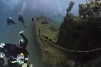 Saros'ta yapay resif projesi kapsamında batırılan gemi, dalgıçlar tarafından görüntülendi.