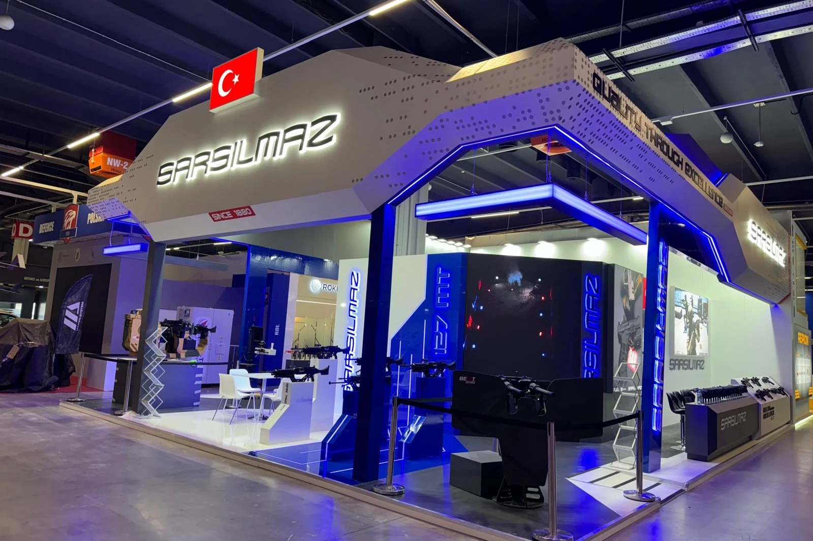 Sarsılmaz, fuarda Uzaktan Komutalı Silah Sistemleriyle (UKSK) dikkatleri üzerine çekerken, UKSK’lar stand tasarımına da etki eden faktörler arasında yer aldı. Sarsılmaz’ın ürettiği 300’den fazla silah çeşidi arasında fuarın ruhuna göre seçilen ürünlerin yer aldığı stand, Türk Savunma Sanayinin geldiği aşamayı canlı olarak ziyaretçilerin deneyimine sundu.