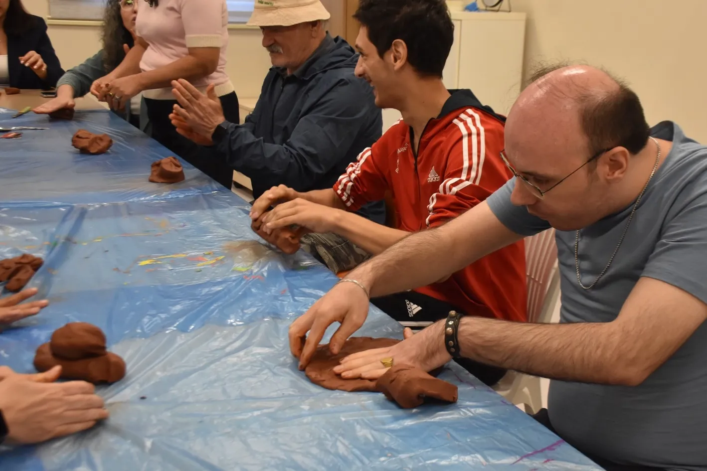 Otizmli oğlu Emre Emiral (34) ile birlikte atölyeye katılan baba Mehmet Emiral, bu atölyelerin özel gereksinimli bireylere önemli katkılar sağladığını dile getirdi. Oğlunun çamura şekil verdiğini ve bu sayede iletişimini artırdığını anlatan Emiral, "Oğlumun daha önce de böyle çalışmaları oldu. Çocukların yeteneklerini ortaya çıkartıp hangi alanda ilerleyebileceklerini belirlemek önemli. Pedagojik olarak ilerleyerek oğlumun liseyi bitirmesini sağladım. Bu sanatsal çalışmalar oğlum gibi engelli bireyleri sakinleştiriyor. Daha rahat oluyorlar, sosyalleşebiliyorlar. Çocukların öz güveni artıyor. Öğretmenlerinin dışında farklı insanlarla diyalog kurmayı öğreniyorlar. Emre üniversite sınavına girdi. Bu yıl kazanamadı. Seneye güzel sanatları hedefliyor. Fotoğraf konusunda yeteneği var. Seramikte başarıları var. Hocaları çizimini beğeniyorlar" ifadelerini kullandı.