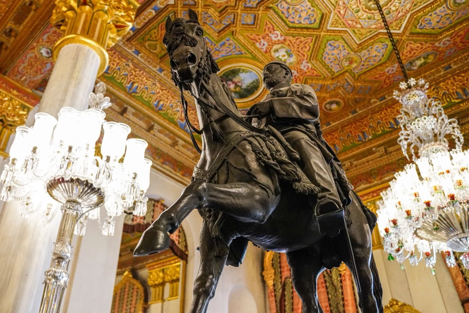 Milli Saraylar İdaresi, Sultan Abdülaziz’in 1871 yılında Floransalı sanatçı C. F. Fuller tarafından tasarlanan bronz atlı heykelinin hikayesini paylaştı. Dolmabahçe Sarayı’nda sergilenen ve daha sonra Topkapı Sarayı’na taşınan heykel, bugün Beylerbeyi Sarayı’nın Havuzlu Salonu’nda yer alıyor.
