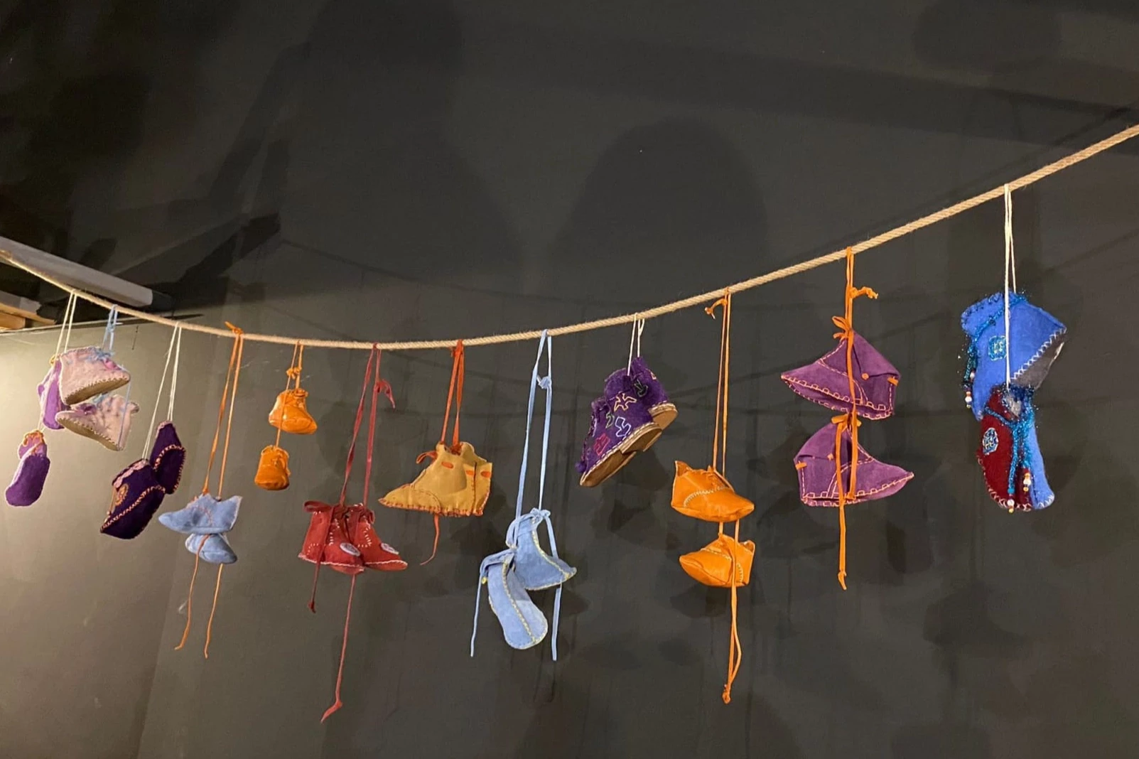 Sergide, Hun İmparatorluğu dönemine dayanan ayakkabı formları, Asya’nın Pazırık bölgesinden Anadolu’ya taşınan motiflerle buluşuyor. Kürk, keçe ve deri gibi doğal malzemelerle yapılan ayakkabılar, Selçuklu ve Osmanlı dönemlerini yansıtan detaylarla bezenmiş. Sergilenen ayakkabılar, geleneksel tekniklerle tamamen el yapımı olarak üretildi. Saya ve taban bölümlerinde lotus, su kuşları, çift başlı horoz gibi motifler dikkat çekerken, Osmanlı çinilerinden ve kilim desenlerinden ilham alınmış detaylar ayakkabılara estetik bir derinlik katıyor.